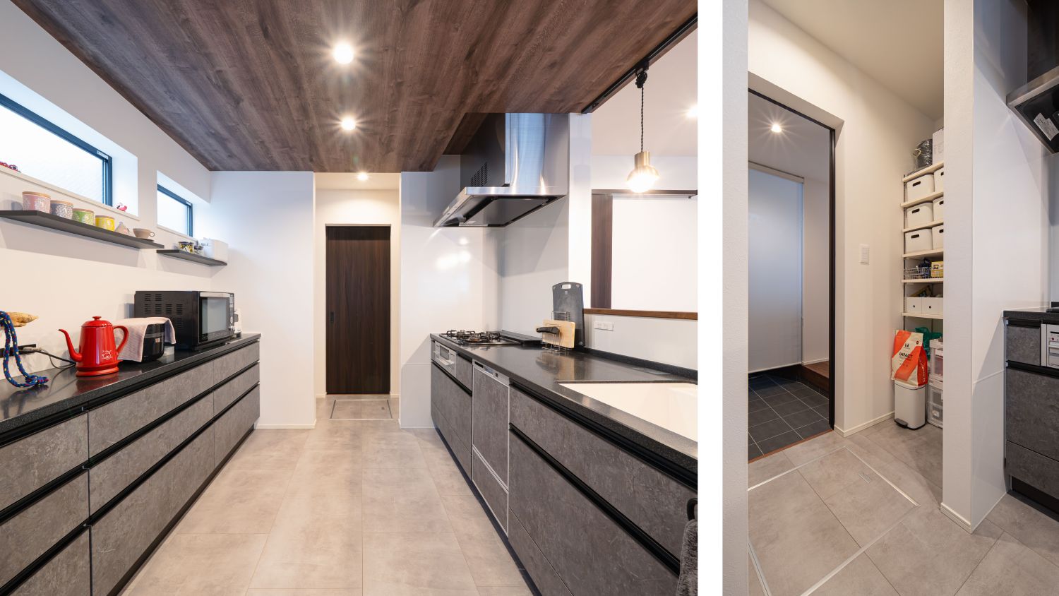 木目とグレーが調和したカフェ風LDKの家