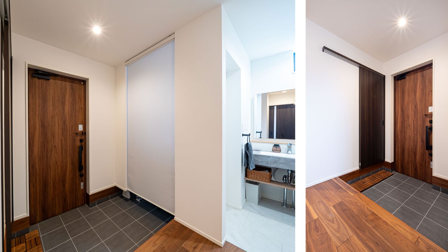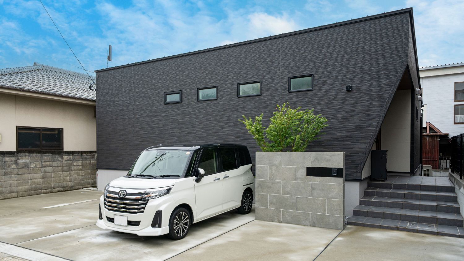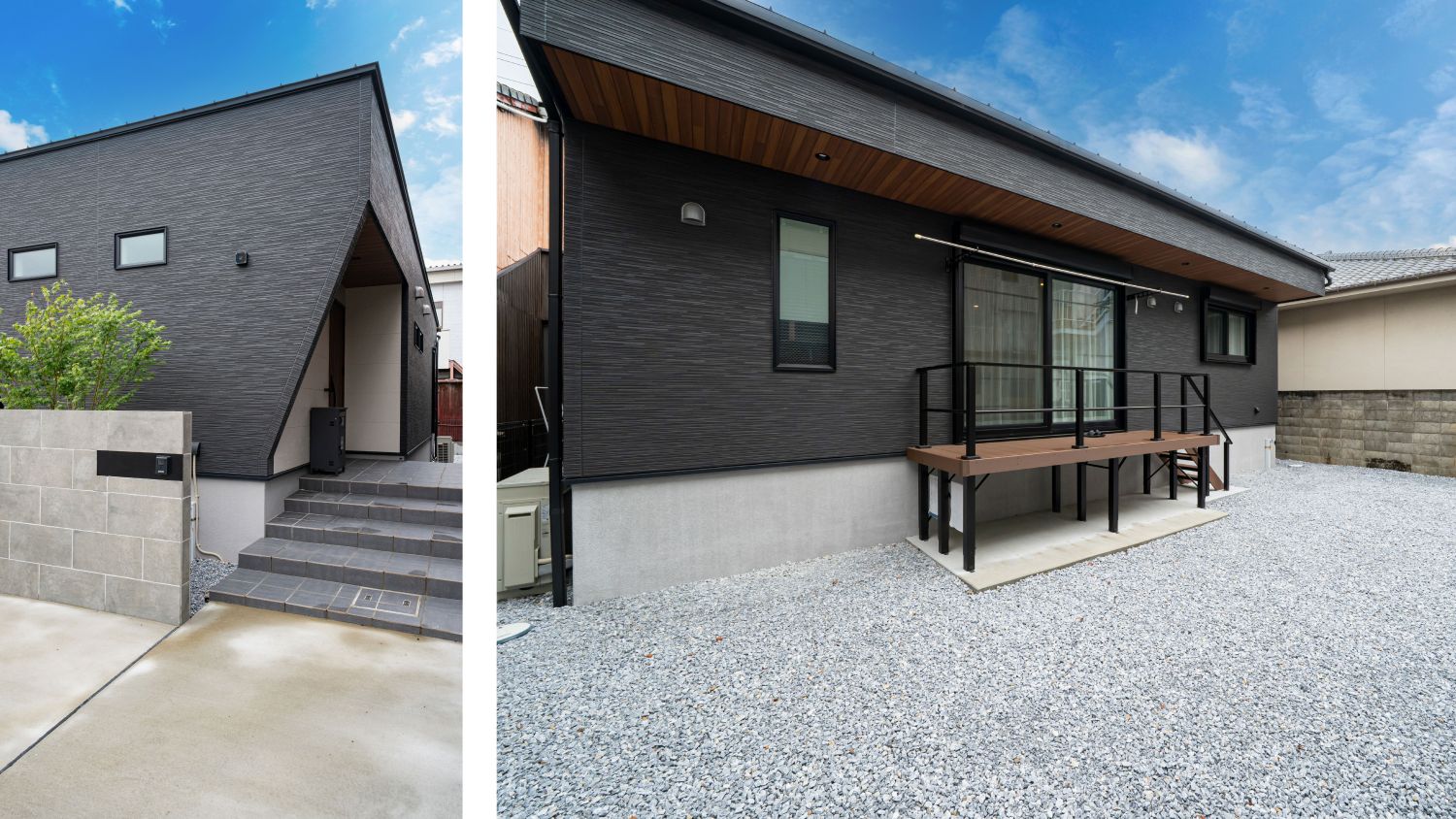 グレーと木目のコントラストが美しいモダンな家