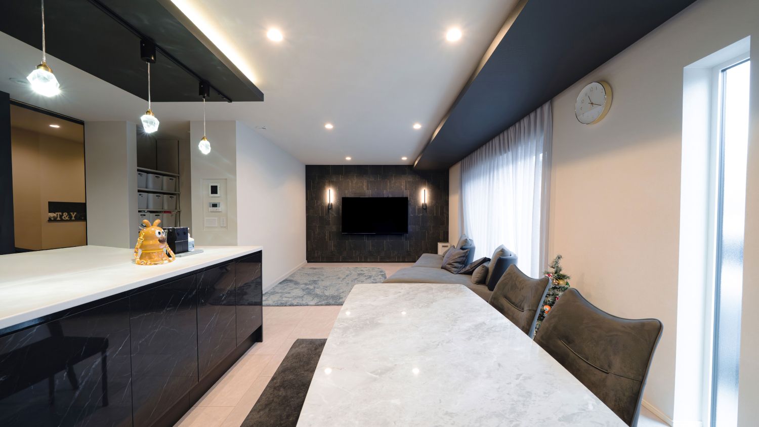 グレイッシュモダンの大空間で 上質な時間を過ごせる家