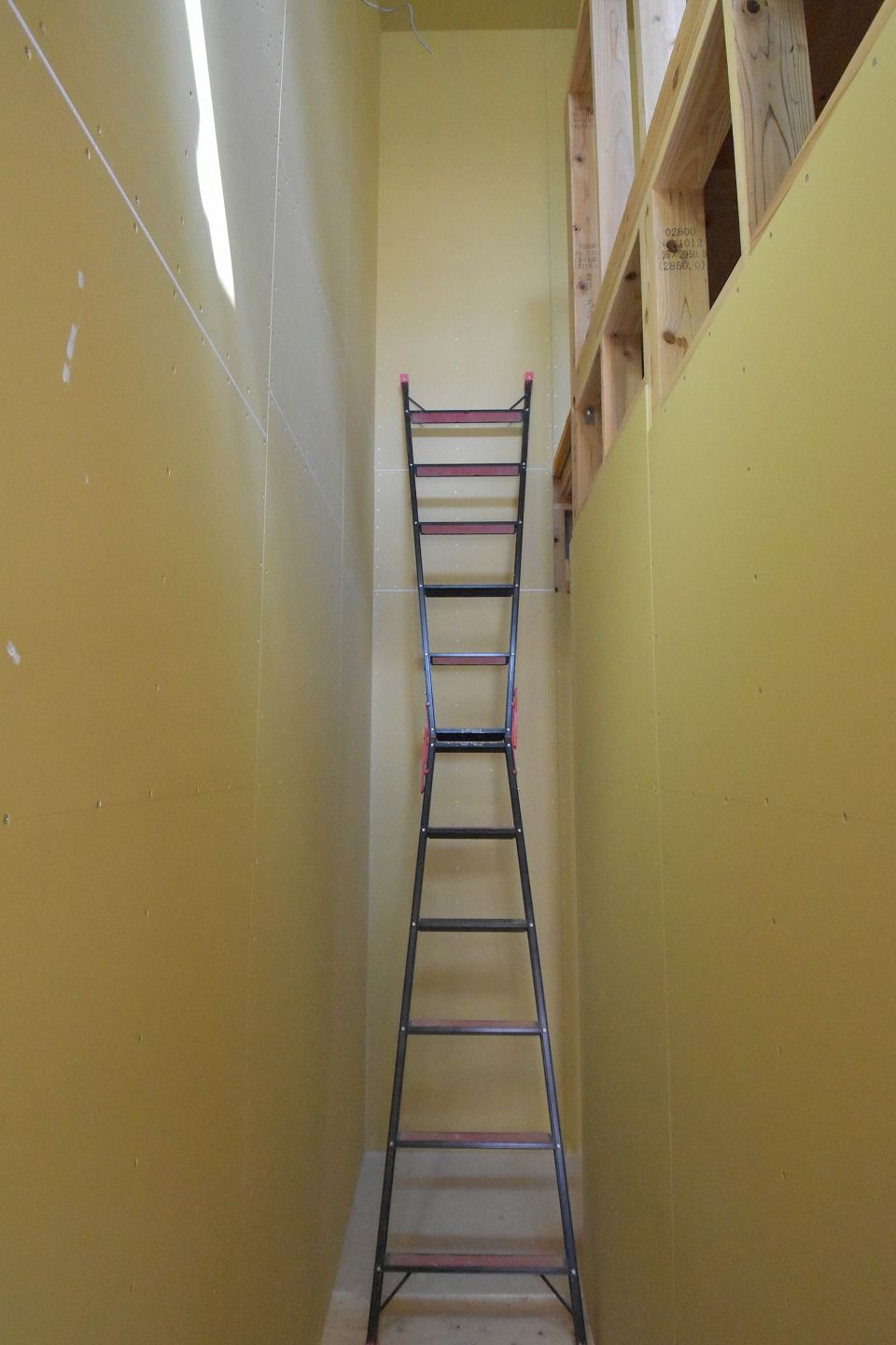 ▼まだ階段ができていないため、二階へは脚立で上がります。