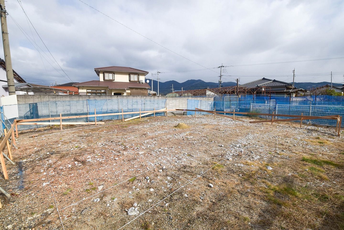 ▼敷地の周りにぐるっと取り付けられている板が遣り方といいます。