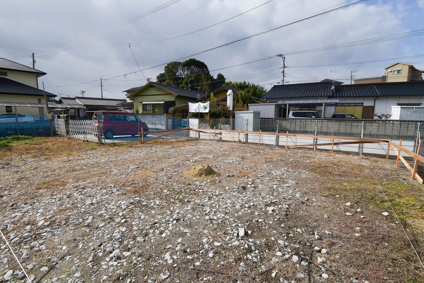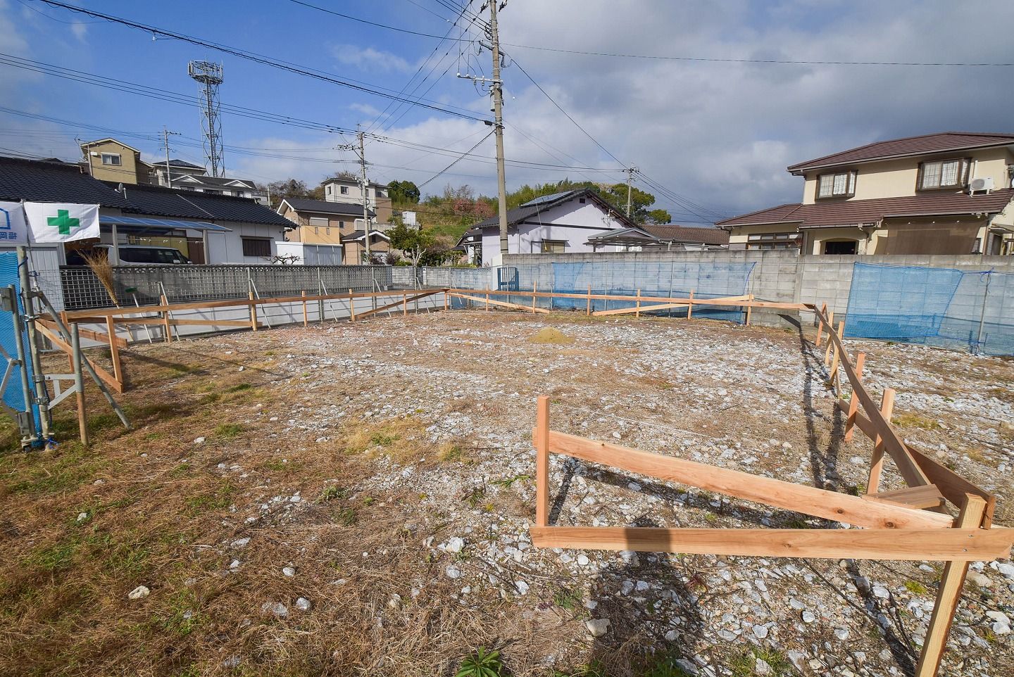 - ▼本日の現場です。基礎工事の遣り方(やりかた)ができていました!