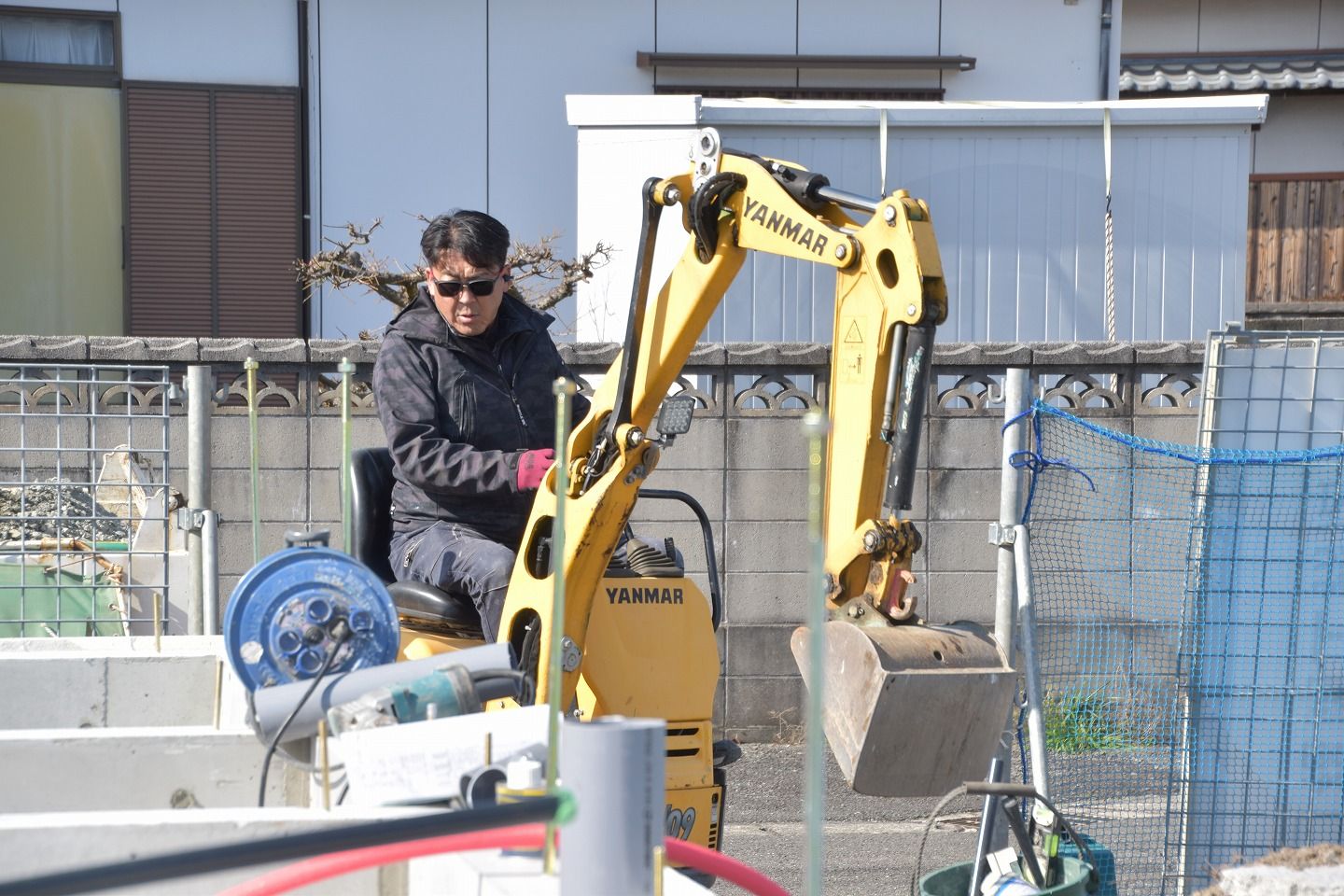 ▼配管を通すため、重機を使いながら土を掘って深さを出していきます。この配管を設置する深さは、寒冷地の凍結防止や駐車場による車両荷重等を考慮しながら決められています。