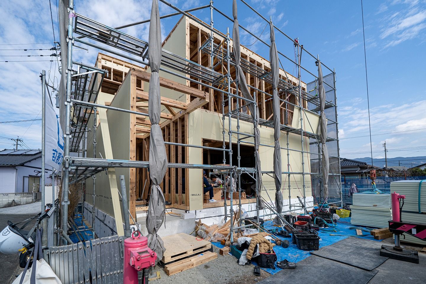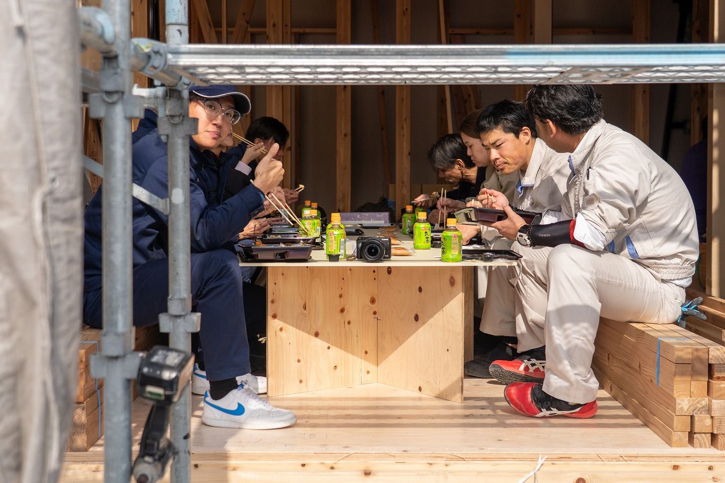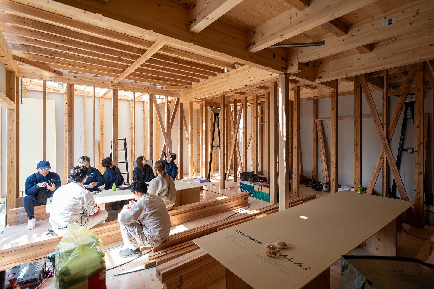 トップページ > 建築現場 > 福智町01 > 「田川郡福智町01」注文住宅現場リポート④【上棟式】 「田川郡福智町01」注文住宅現場リポート④【上棟式】 2026.02.09掲載 こんにちは!リポート担当の有村です。2月5日(木)晴れ。本日は田川郡福智町にて上棟式を執り行いました!それではさっそくリポートしていきましょう!▼お昼の様子です。施工が着々と進んでいます!▼おいしいお弁当を頂き、みんな元気をチャージできました!▼昼食後、図面を見ながら現場案内をさせていただきました!実際に現場を見て回ることでイメージがしやすくなりますね!▼この度の上棟式、誠におめでとうございます。これから本格的に始まる家づくり、ぜひ楽しまれてください!▼本日のおまけご主人様の弟様がポーズをとってくれました! もっと福岡工務店を知りたい方 関連記事を見る 2026.01.26 「田川郡福智町01」注文住宅現場リポート③【基礎工事】【給排水】 2025.12.26 「田川郡福智町01」注文住宅現場リポート②【基礎工事】【遣り方】 2025.12.01 「田川郡福智町01」注文住宅現場リポート①【地鎮祭】