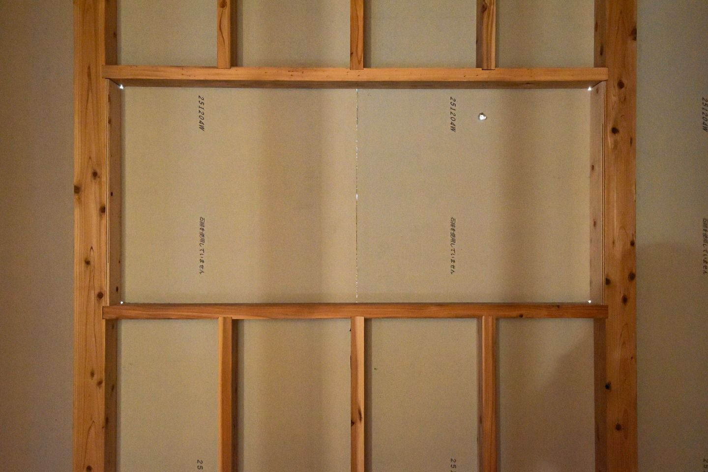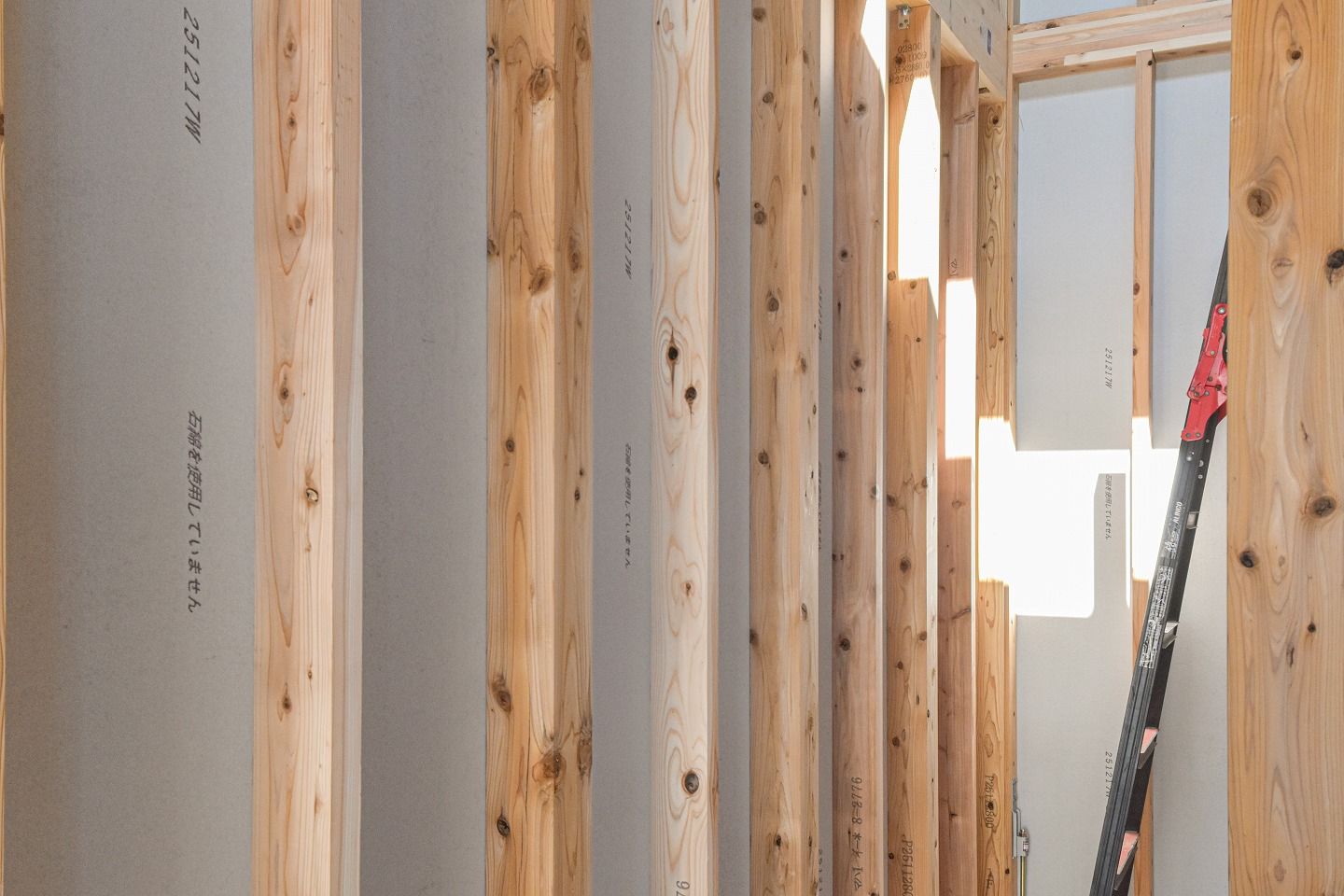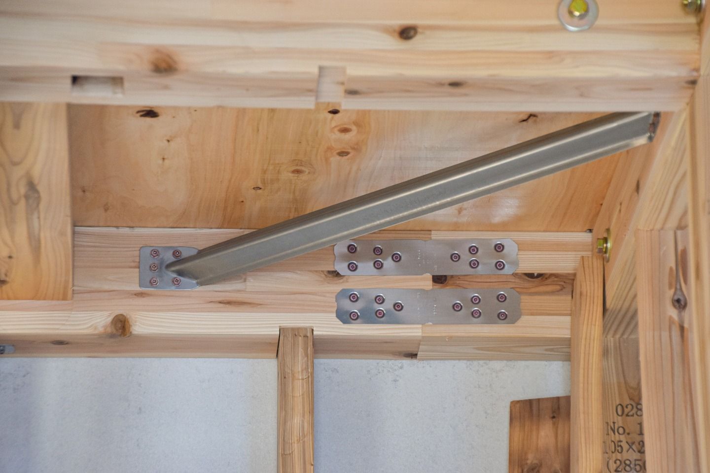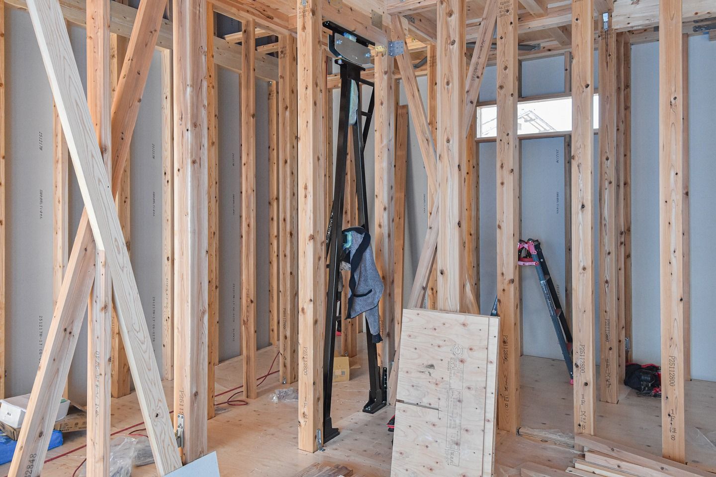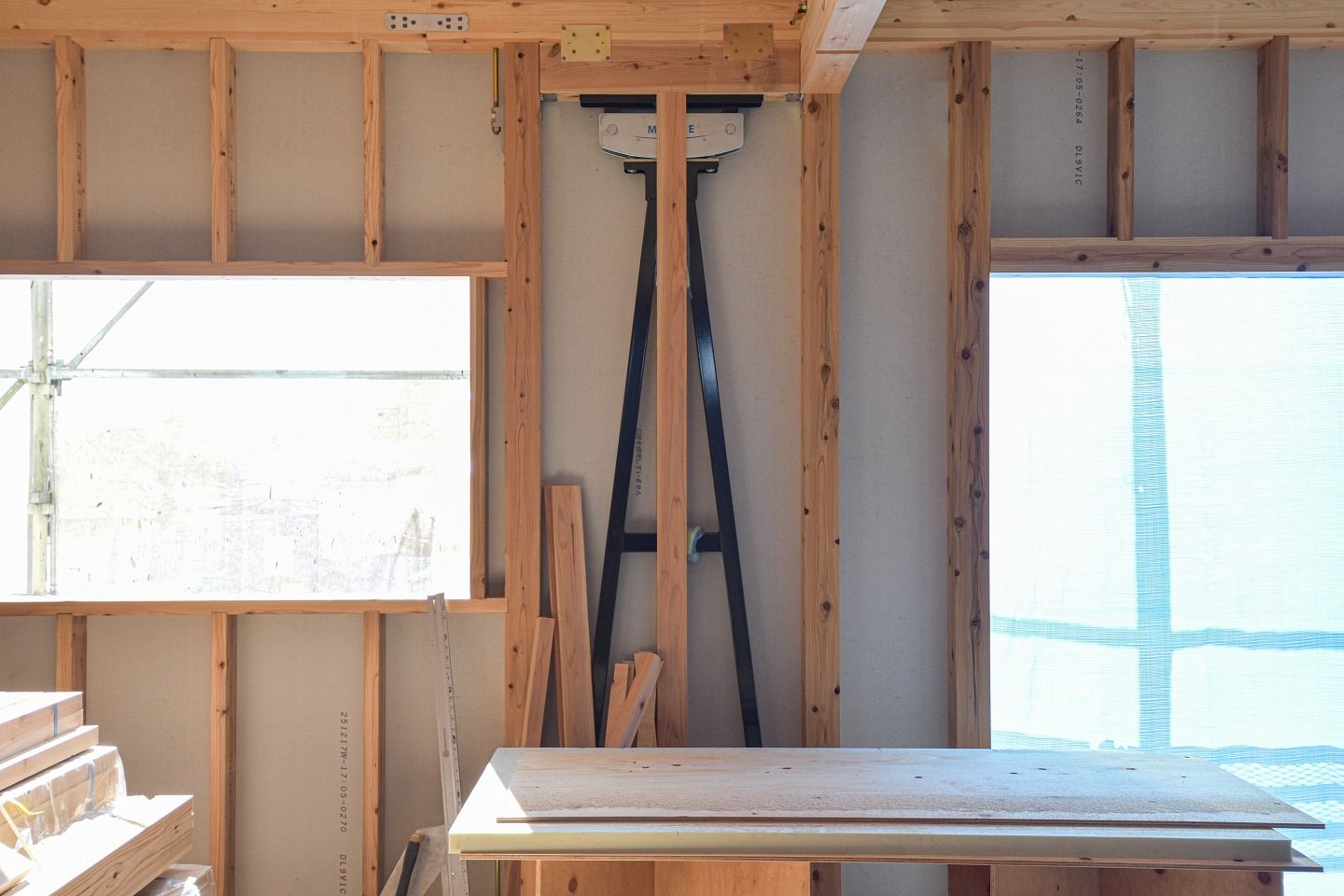 ▼間柱も取り付けられ、柱が綺麗に並んでいました。金物も取り付けられています。