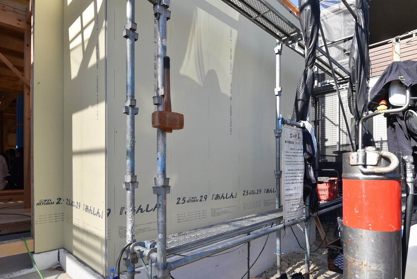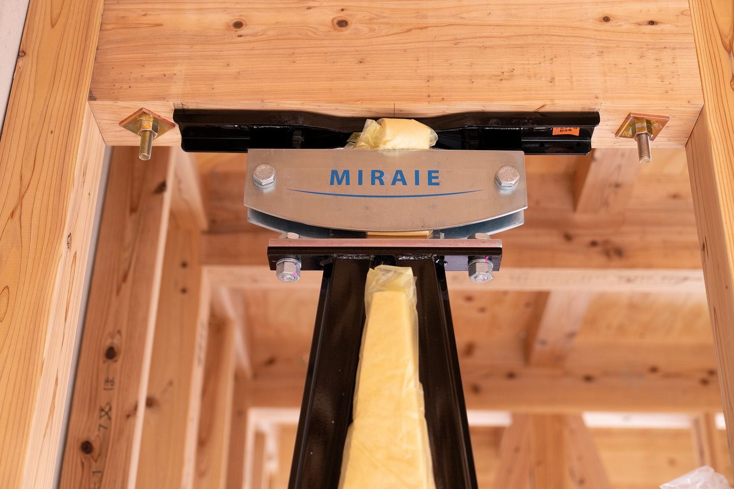 ▼制振ユニット「MIRAIE」の取り付けも完了していました。高減衰ゴムを採用し、振動エネルギーを熱エネルギーに変換することで地震の揺れを効率良く吸収するものです。
