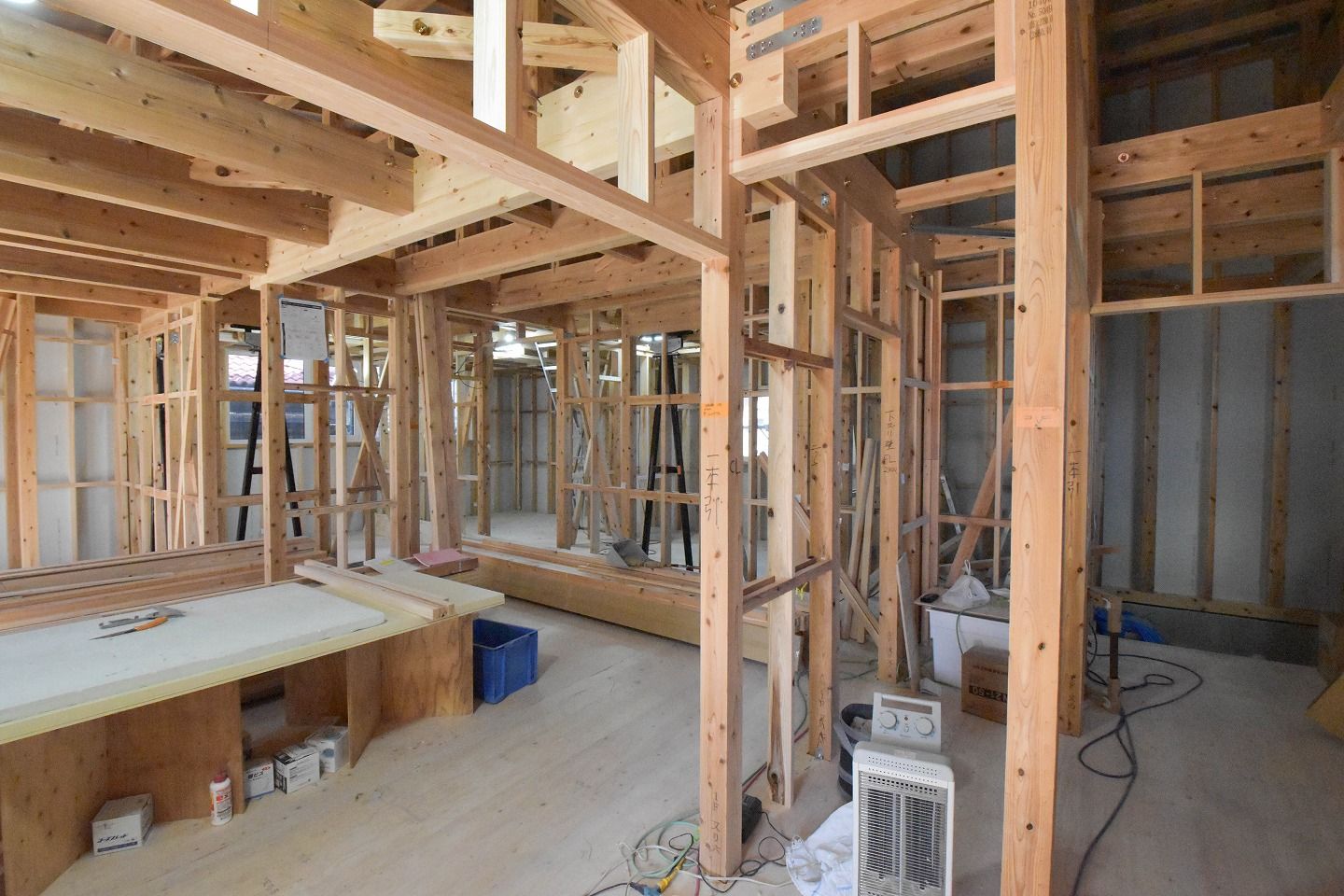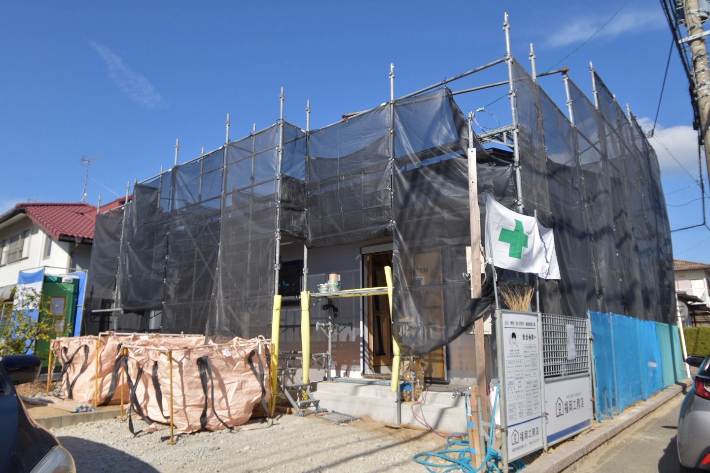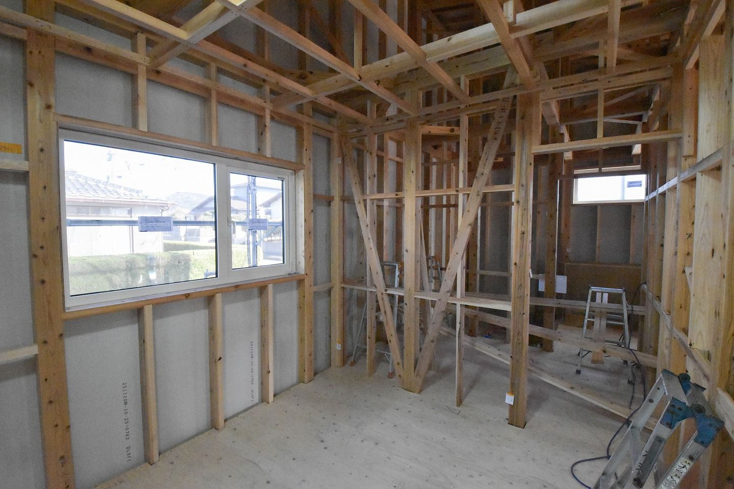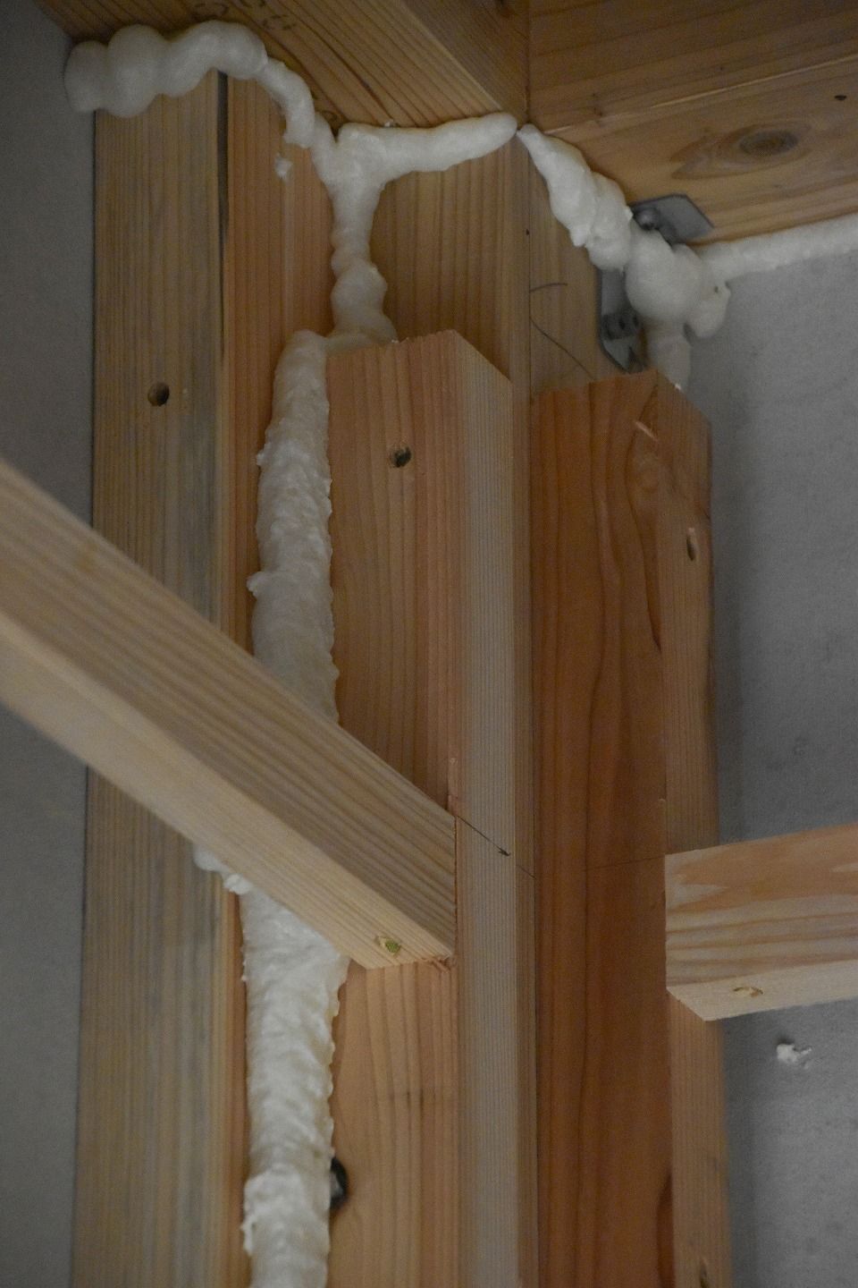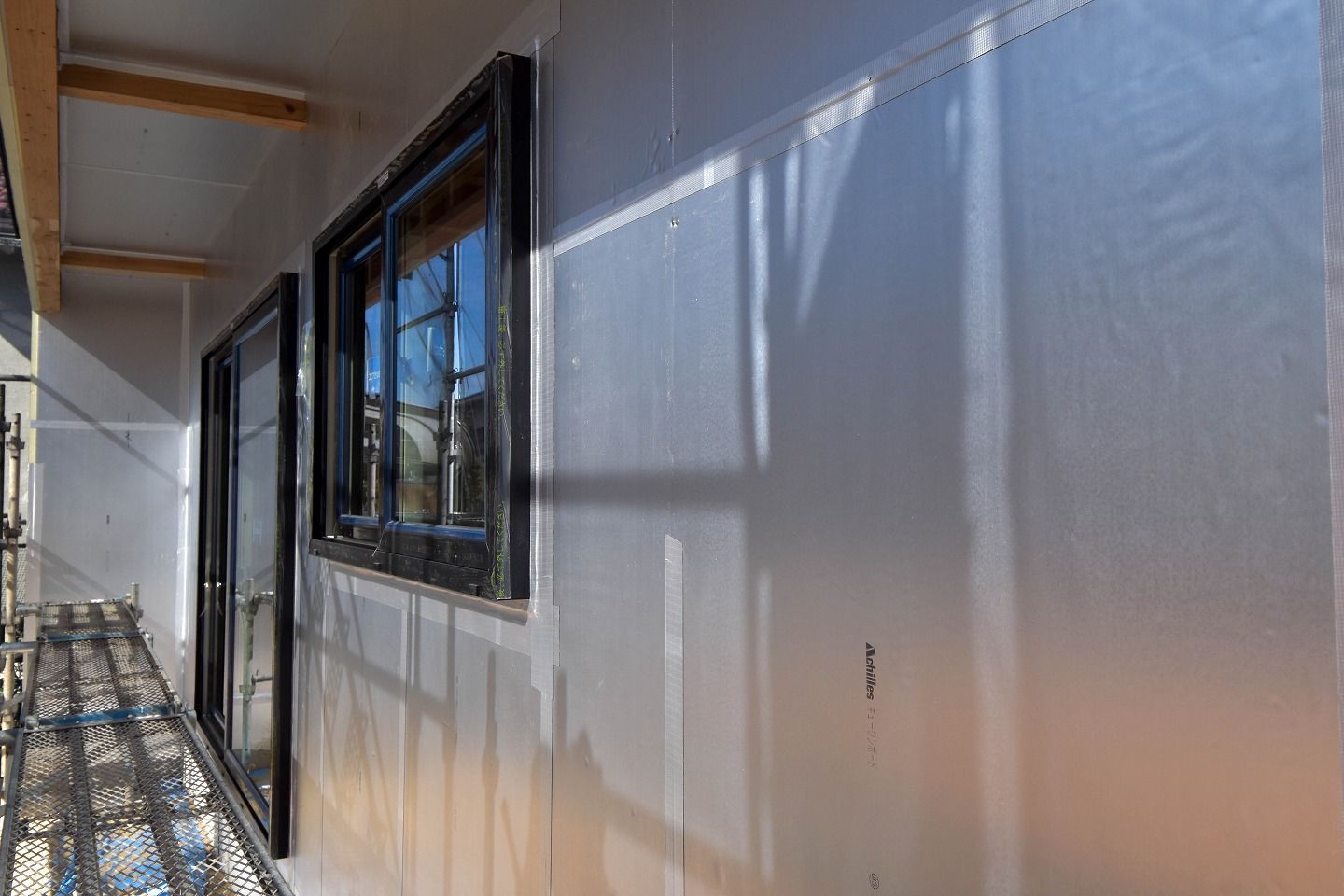 トップページ > 建築現場 > 福津市12 > 「福津市12」注文住宅現場リポート⑤【木工事】【外断熱材】 「福津市12」注文住宅現場リポート⑤【木工事】【外断熱材】 2026.01.31掲載 1月30日(金)晴れこんにちは。リポート担当の松永です。本日は、工事の進捗具合をリポートしていきたいと思います。▼外観はシルバーの素材に覆われています。「耐力面材あんしん」の上に、外断熱材のキューワンボードが取り付けられています。高い赤外線反射率によって夏季の遮熱に効果があるアルミ箔です。さらに、高性能硬質ウレタンフォームの断熱性能と併せることにより、住宅の省エネルギーに貢献!▼玄関付近から見た内部の様子と部屋の奥から見た様子です。▼サッシの取り付けもすべて完了していました。サッシが取り付けられることで、より部屋感が増しますよね!▼気密検査に向け気密処理が行わなわれていました。隙間になりそうな柱の間などにウレタンを充填することで、更に上の気密性を実現することが出来ます。細かいところではありますが、徹底することで高品質な住宅を作り上げることが出来ます。▼こちらは浴室部分です。来月半ばには浴室の取り付けも行われるようです。本日のリポートはここまで。次回もお楽しみに! もっと福岡工務店を知りたい方 関連記事を見る 2026.01.17 「福津市12」注文住宅現場リポート④【木工事】【金物取付】 2026.01.10 「福津市12」注文住宅現場リポート③【上棟式】 2025.12.05 「福津市12」注文住宅現場リポート②【基礎工事】 2025.11.22 「福津市12」注文住宅現場リポート①【地鎮祭】