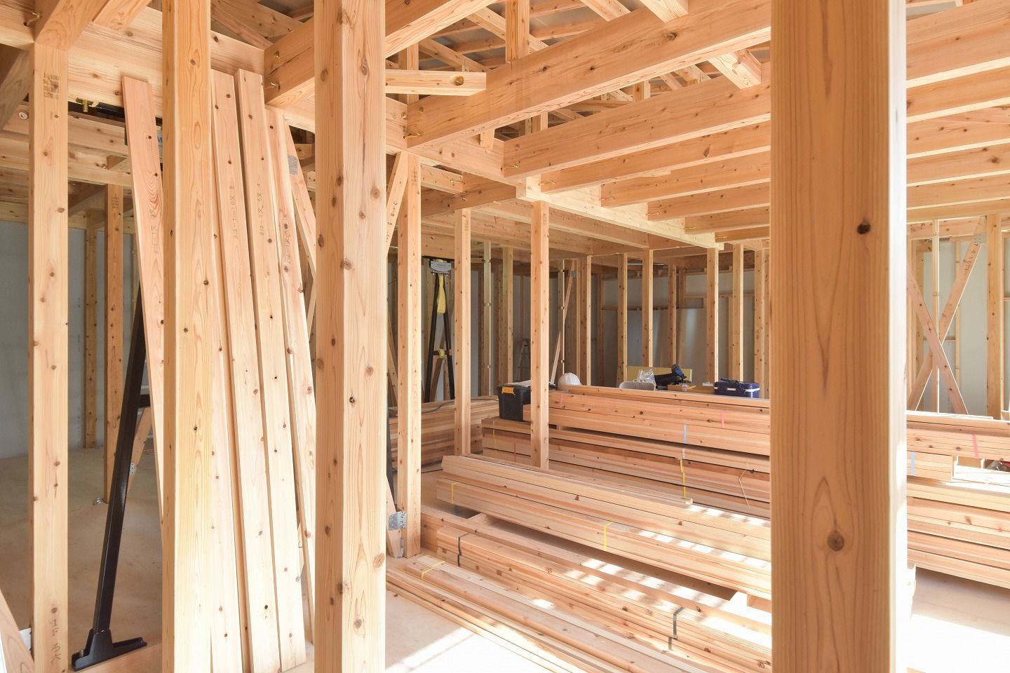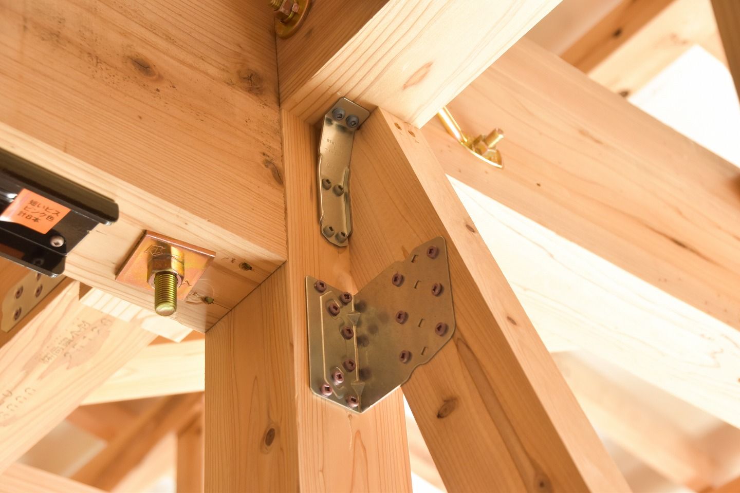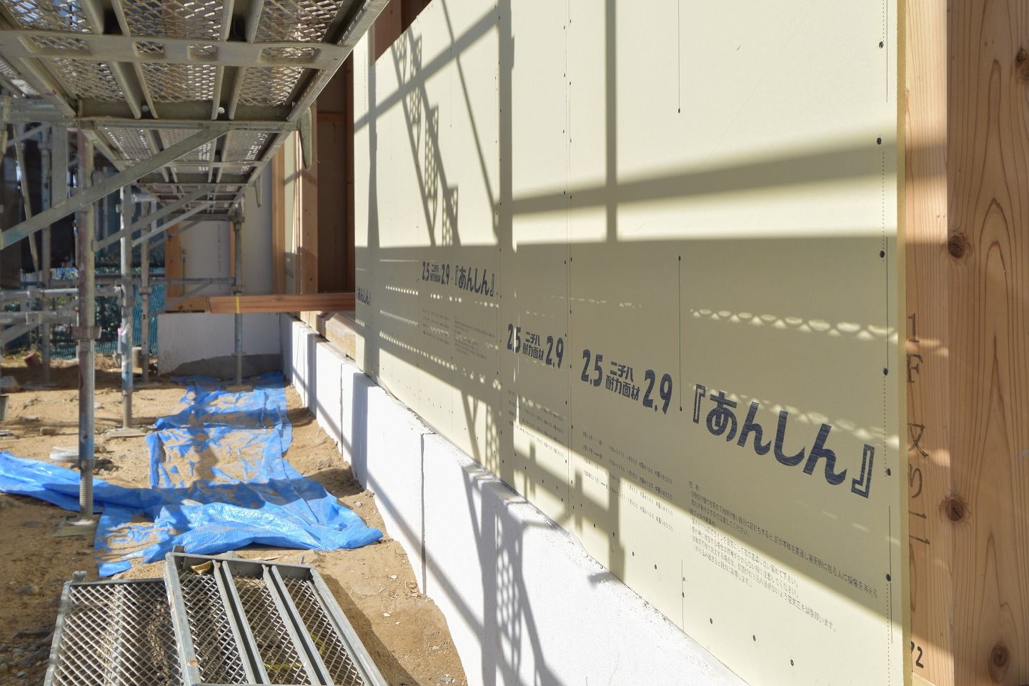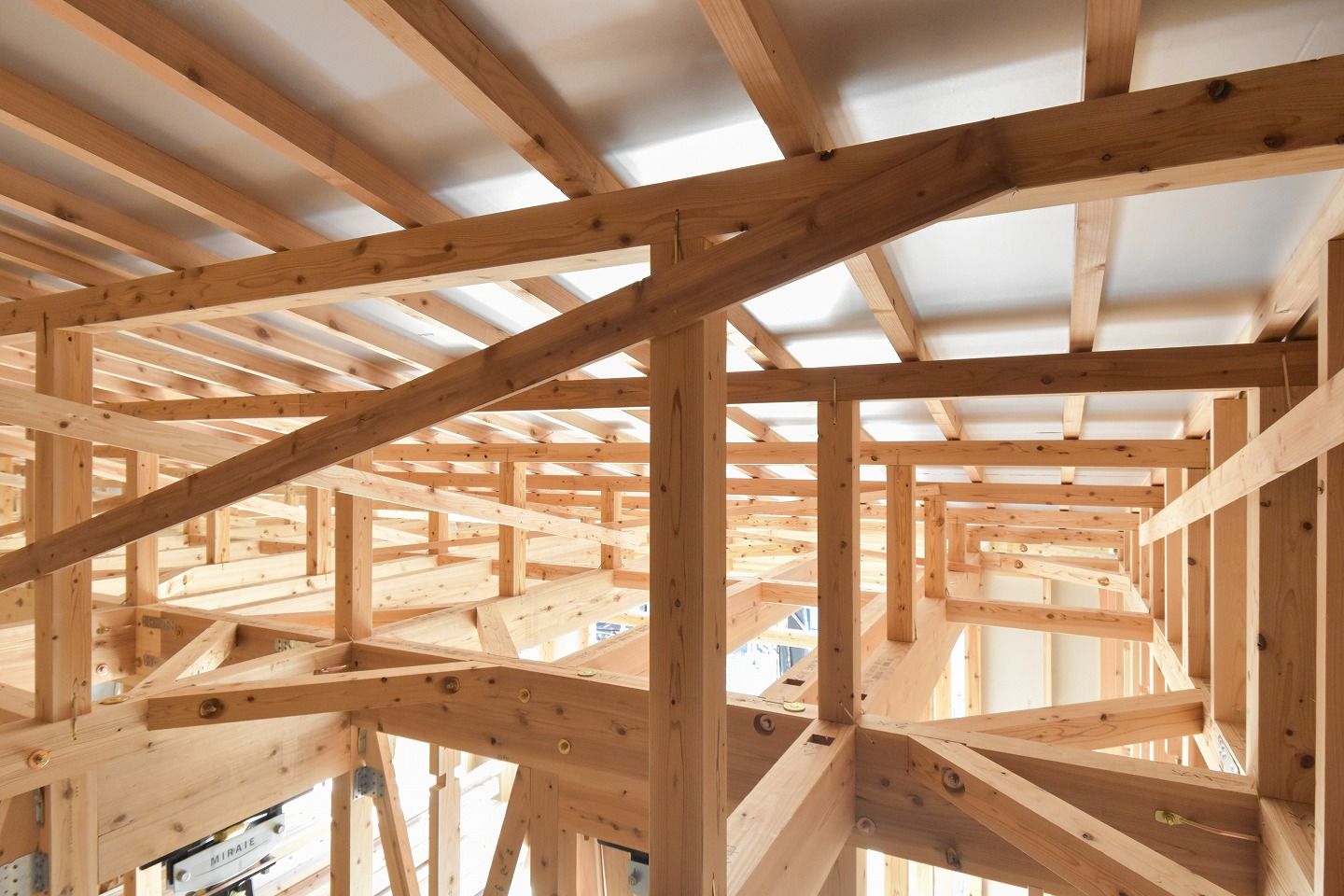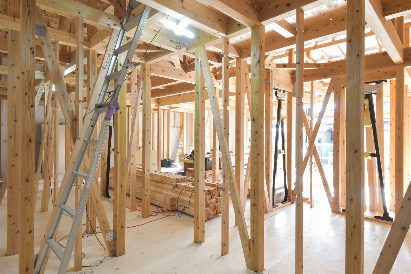 トップページ > 建築現場 > 福津市12 > 「福津市12」注文住宅現場リポート④【木工事】【金物取付】 「福津市12」注文住宅現場リポート④【木工事】【金物取付】 2026.01.17掲載 こんにちは!リポート担当の矢野です。1月14日(木)晴れ。本日は福津市にて木工事の様子をリポートしていきます!▼まずは外壁から見ていきましょう。外壁は高い耐震性、防耐火性、耐久性など、様々な面から建物の安心をつくる「耐力面材あんしん」の取り付けられています。▼1階の様子です。木材が綺麗に整頓されて積み上がっていました。▼間柱の施工もどんどん進んでいます。▼屋根裏は一部がロフトになっていました。「屋根裏」ってワード、いくつになってもワクワクします。▼さらに、今だけの光景も目にすることができました。屋根を支える柱が綺麗に並び、差し込む日の光もきれいで、圧巻の光景でした。▼こちらの左のバッテンは「筋交い」といって、地震や風による建物の変形を防ぎ、耐震性を高める役割があります。そして右の黒いA字のものは「MIRAIE」です。高減衰ゴムを採用し、振動エネルギーを熱エネルギーに変換することで地震の揺れを効率良く吸収するものです。▼本日は「金物取付」が行われていました。この様々な形の金物は、家の柱や梁など目に見えない基礎部分を補強し、家を支える重要な役割を果たしています!本日のリポートはここまで!次回もお楽しみに! もっと福岡工務店を知りたい方 関連記事を見る 2026.01.31 「福津市12」注文住宅現場リポート⑤【木工事】【外断熱材】 2026.01.10 「福津市12」注文住宅現場リポート③【上棟式】 2025.12.05 「福津市12」注文住宅現場リポート②【基礎工事】 2025.11.22 「福津市12」注文住宅現場リポート①【地鎮祭】