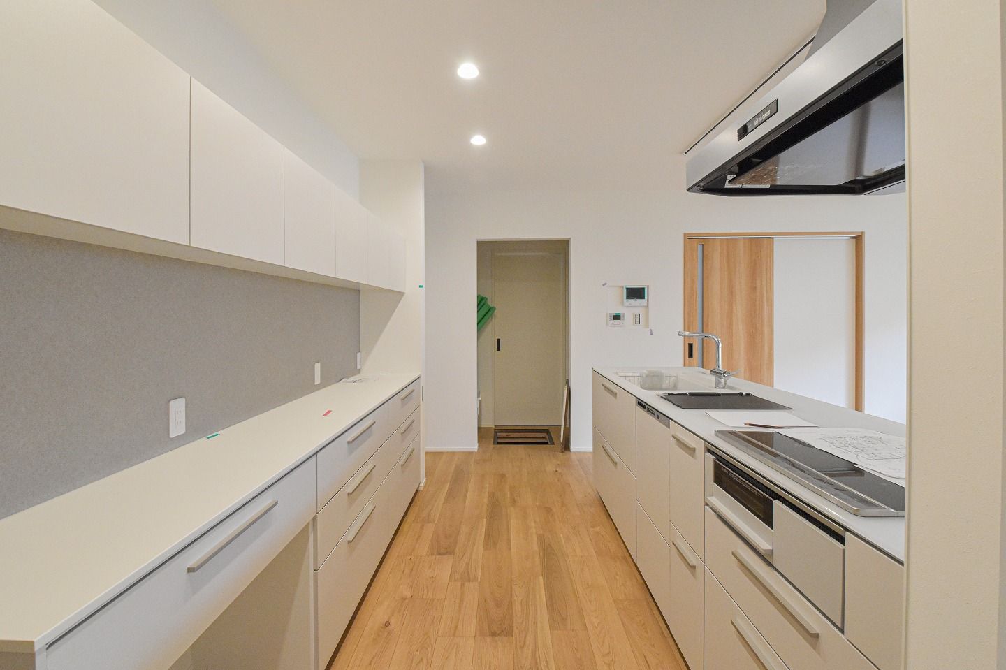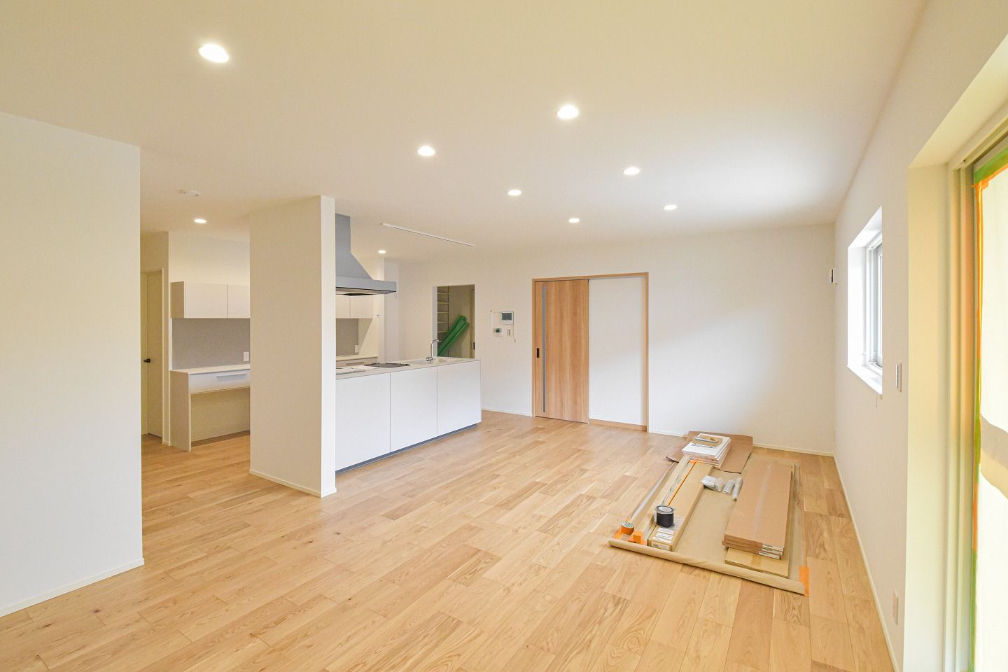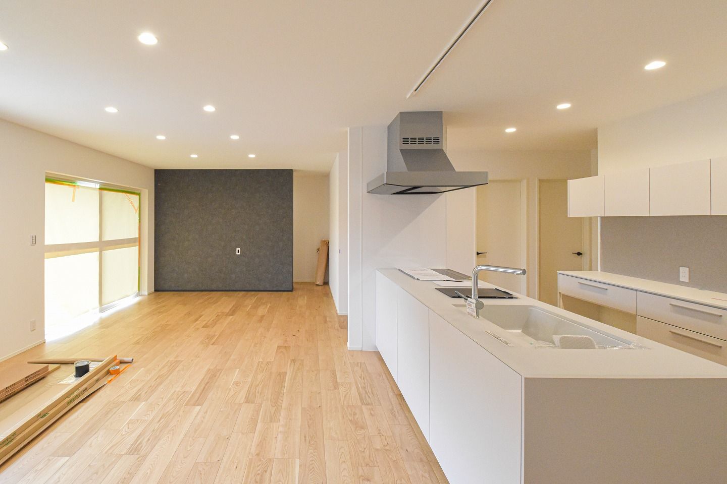 トップページ > 建築現場 > 福津市12 > 「福津市12」注文住宅現場リポート⑦【竣工】 「福津市12」注文住宅現場リポート⑦【竣工】 2026.04.23掲載 こんにちは!リポート担当の矢野です。4月13日(月)天気。本日は福津市にて、遂に完成した様子をリポートして参ります!▼LDKの様子です。ホワイト基調の中にグレーのアクセントが映えます!▼キッチン部分です。キッチンやカップボードもホワイトに統一することで清潔感のある雰囲気に。▼洗面室です。グレーの洗面台がアクセントとなり素敵です!▼洋室部分です。▼小屋裏部分です。小屋裏には階段で上ることができ、更に外が見える窓までついています!いよいよ次回はお引き渡しとなります!楽しみですね!次回のリポートもお楽しみに! もっと福岡工務店を知りたい方 関連記事を見る 2026.02.09 「福津市12」注文住宅現場リポート⑥【木工事】 2026.01.31 「福津市12」注文住宅現場リポート⑤【木工事】【外断熱材】 2026.01.17 「福津市12」注文住宅現場リポート④【木工事】【金物取付】 2026.01.10 「福津市12」注文住宅現場リポート③【上棟式】 2025.12.05 「福津市12」注文住宅現場リポート②【基礎工事】 2025.11.22 「福津市12」注文住宅現場リポート①【地鎮祭】