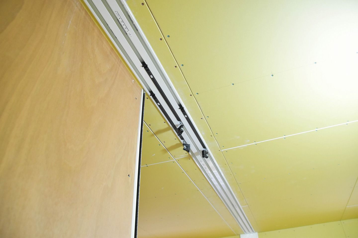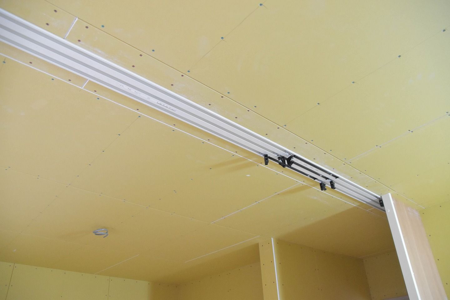 ▼部屋の様子です。3部屋に仕切られるのでしょうか?仕切り用のレールが取り付けられていました。