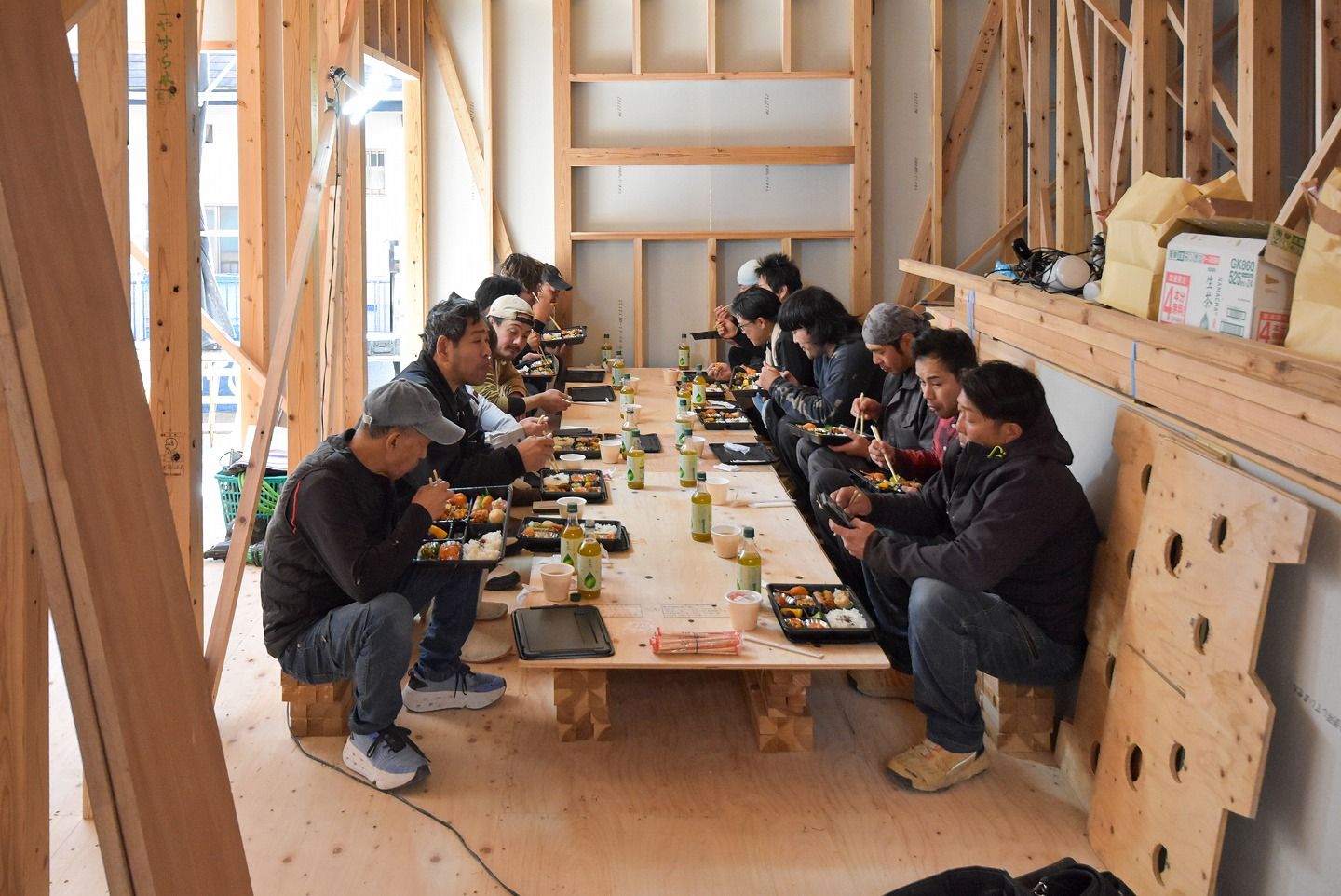 ▼お昼の様子です。施工が着々と進んでいます!