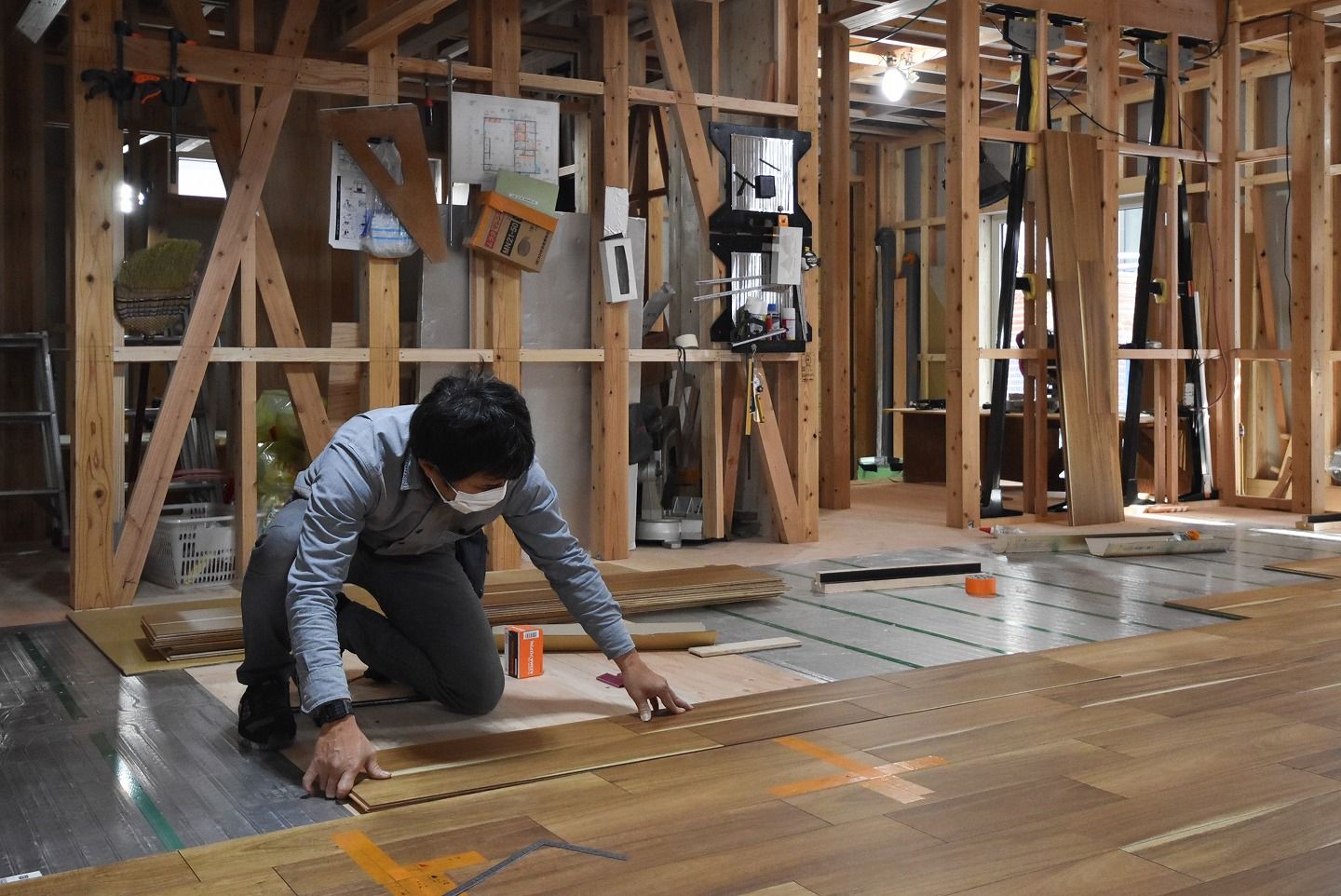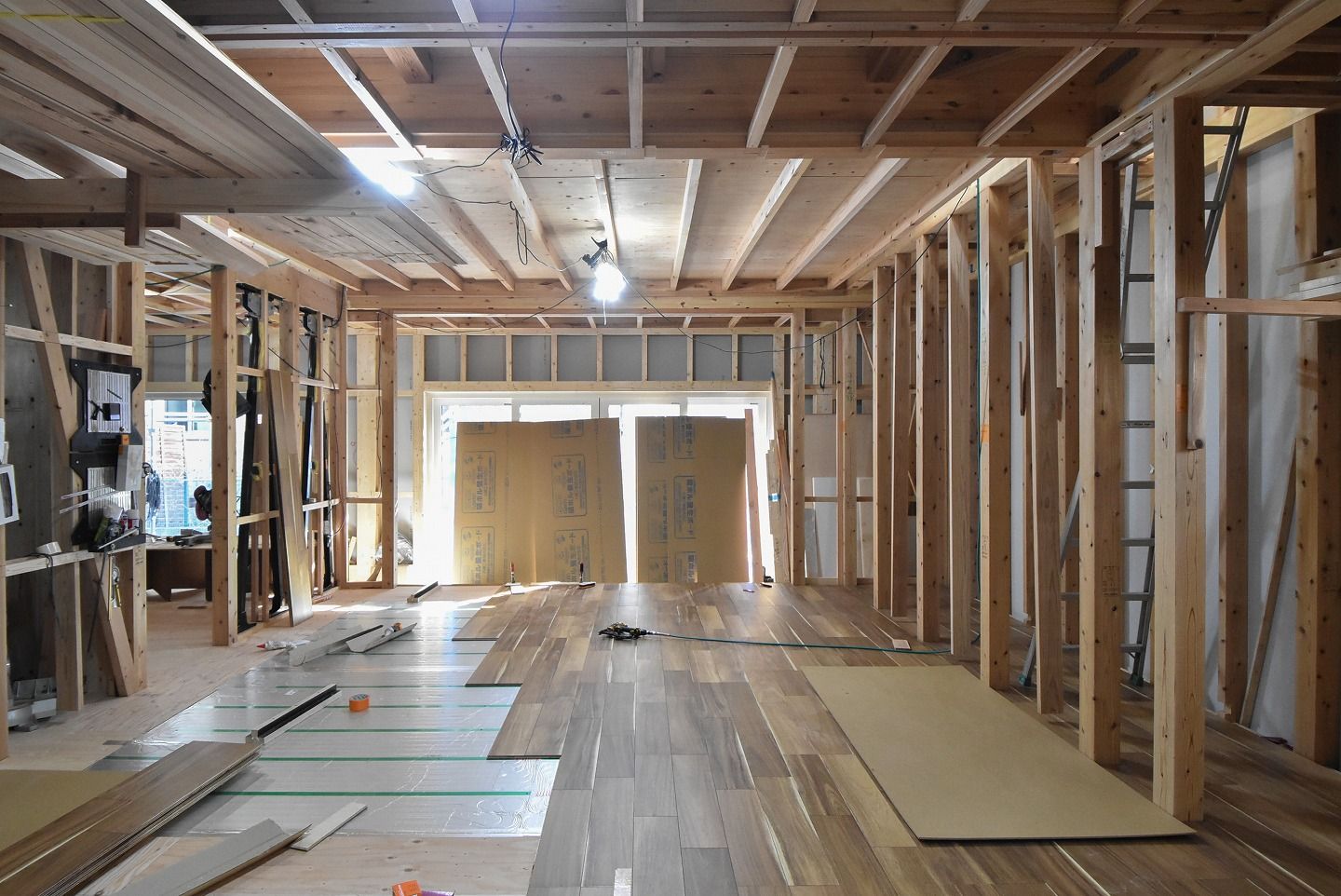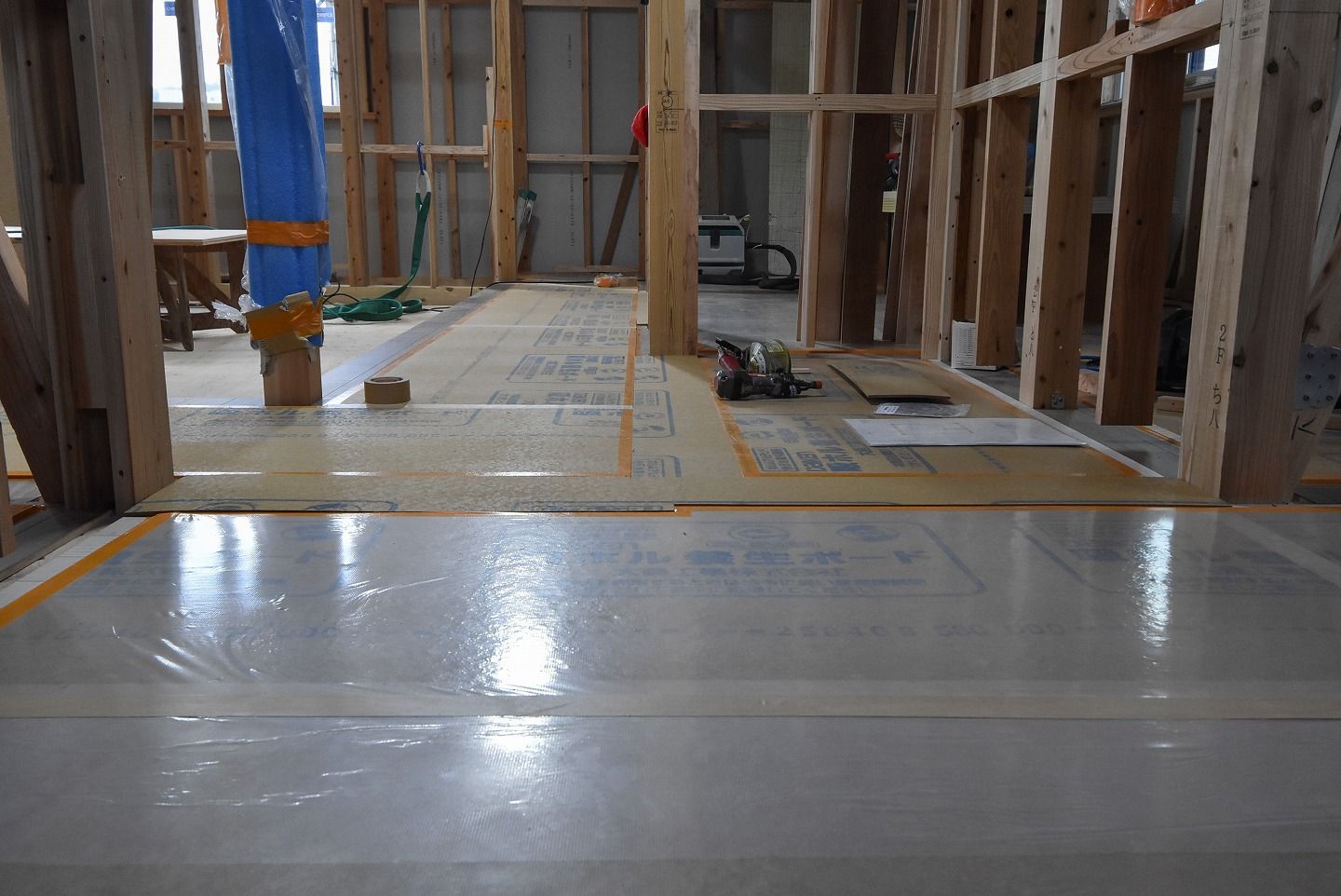 トップページ > 建築現場 > 小倉北区03 > 「小倉北区03」注文住宅現場リポート④【木工事】【床施工】 「小倉北区03」注文住宅現場リポート④【木工事】【床施工】 2025.11.29掲載 こんにちは!リポート担当の矢野です。11月28日(金)曇り。本日は小倉北区にて木工事の様子をリポートしていきたいと思います!▼外観の様子です。外断熱材のキューワンボードの貼り付けが完了され、外観はぐるりと綺麗なシルバーに覆われています。この後サイディング工事へ進んでいくと、またぐっと印象が変わります。個性が出る部分でもあるので楽しみですね!▼2階の様子です。▼フローリングが完成し、養生ボードで覆われています。▼1階の様子です。▼棟梁の土崎大工が床暖房の上にフローリングを敷いていました。▼このシルバーの部分が福岡工務店では珍しい床暖房です。緑のラインと同じ方向のボーダーのような筋部分がパイプになっており、ガスで温めた温水がこの張り巡らされたパイプに行き渡ることで、床がじんわりと暖まっていきます。今回のリポートはここまで!次回もお楽しみに! もっと福岡工務店を知りたい方 関連記事を見る 2025.11.10 「小倉北区03」注文住宅現場リポート③【木工事】【サッシ取り付け】 2025.10.30 「小倉北区03」注文住宅現場リポート③【上棟式】 2025.09.27 「小倉北区03」注文住宅現場リポート②【基礎工事】【型枠取り付け】 2025.08.11 「小倉北区03」注文住宅現場リポート①【地鎮祭】