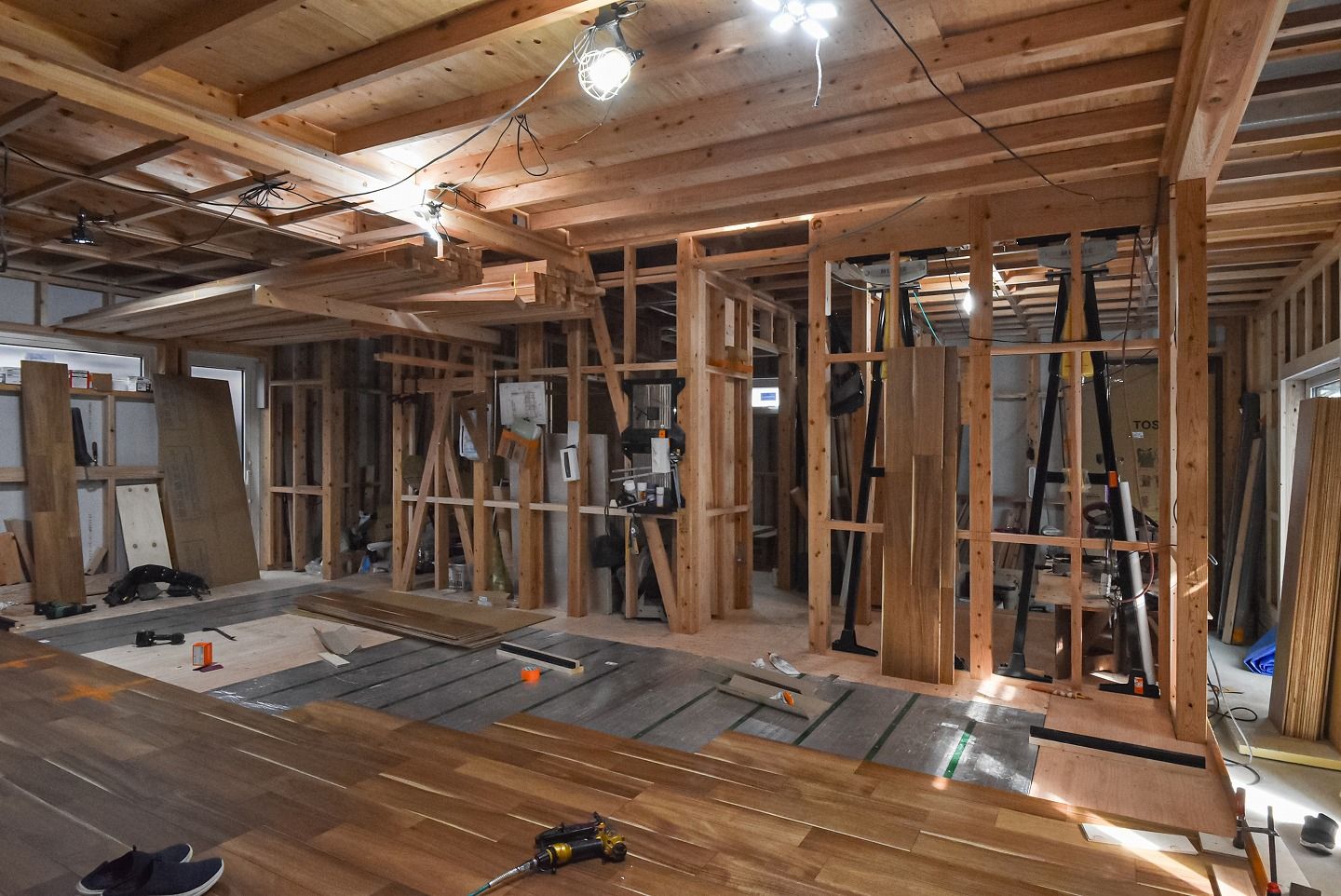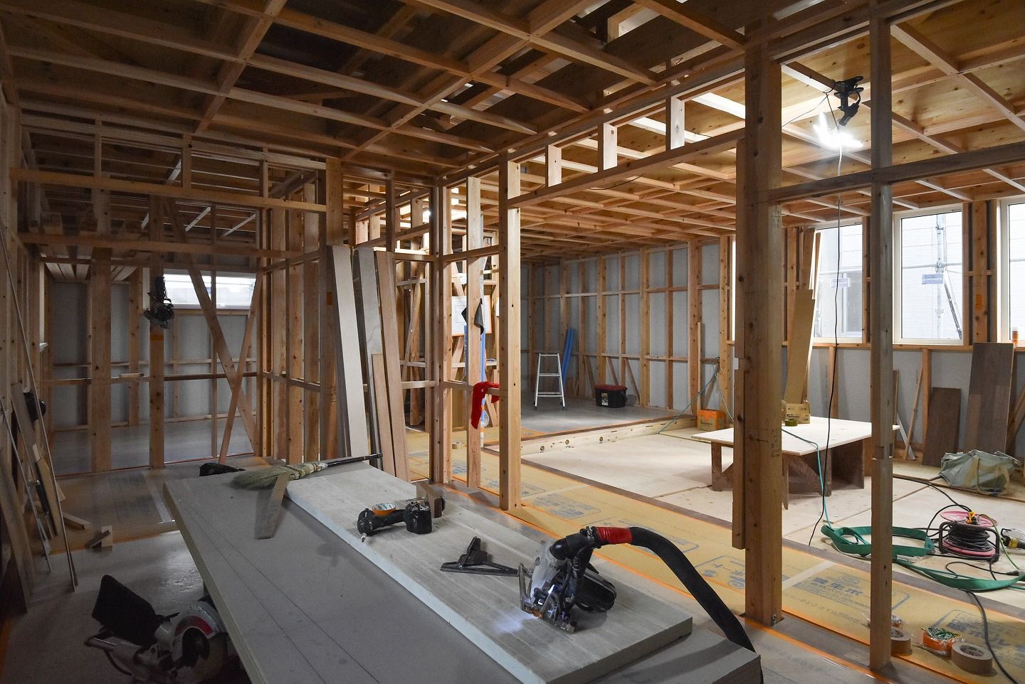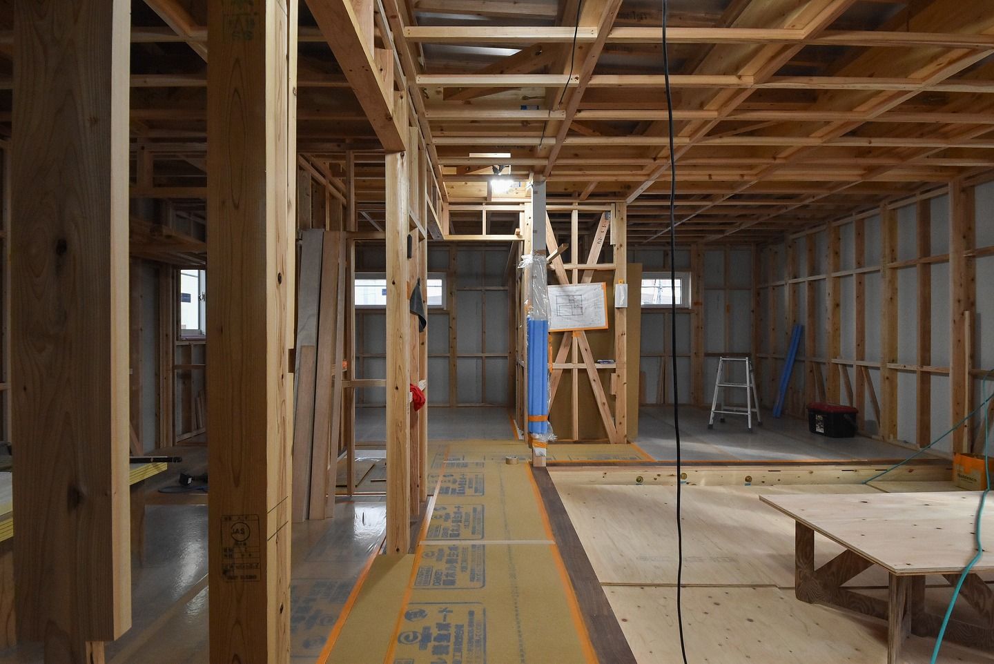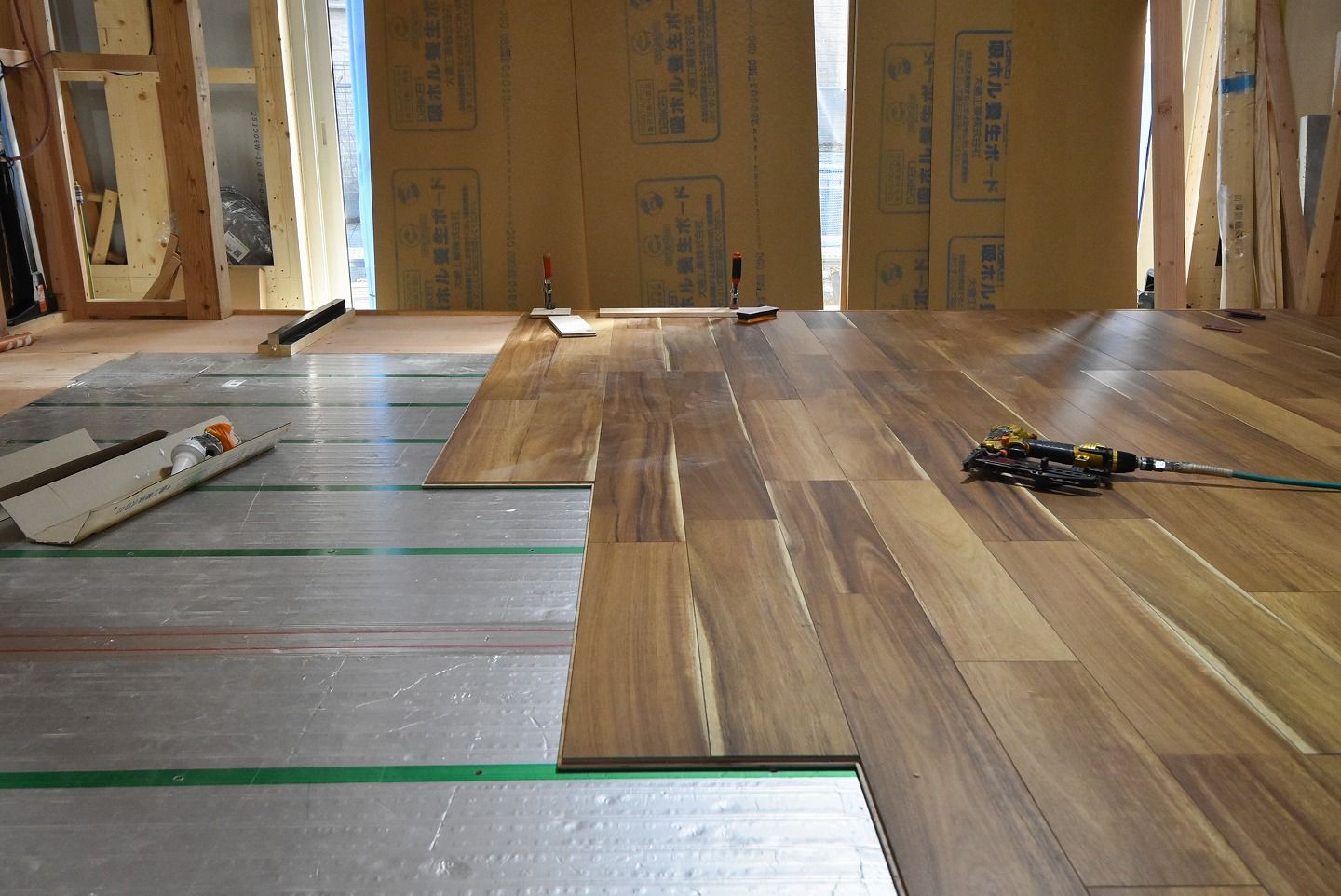 トップページ > 建築現場 > 小倉北区03 > 「小倉北区03」注文住宅現場リポート④【木工事】【床施工】 「小倉北区03」注文住宅現場リポート④【木工事】【床施工】 2025.11.29掲載 こんにちは!リポート担当の矢野です。11月28日(金)曇り。本日は小倉北区にて木工事の様子をリポートしていきたいと思います!▼外観の様子です。外断熱材のキューワンボードの貼り付けが完了され、外観はぐるりと綺麗なシルバーに覆われています。この後サイディング工事へ進んでいくと、またぐっと印象が変わります。個性が出る部分でもあるので楽しみですね!▼2階の様子です。▼フローリングが完成し、養生ボードで覆われています。▼1階の様子です。▼棟梁の土崎大工が床暖房の上にフローリングを敷いていました。▼このシルバーの部分が福岡工務店では珍しい床暖房です。緑のラインと同じ方向のボーダーのような筋部分がパイプになっており、ガスで温めた温水がこの張り巡らされたパイプに行き渡ることで、床がじんわりと暖まっていきます。今回のリポートはここまで!次回もお楽しみに! もっと福岡工務店を知りたい方 関連記事を見る 2025.11.10 「小倉北区03」注文住宅現場リポート③【木工事】【サッシ取り付け】 2025.10.30 「小倉北区03」注文住宅現場リポート③【上棟式】 2025.09.27 「小倉北区03」注文住宅現場リポート②【基礎工事】【型枠取り付け】 2025.08.11 「小倉北区03」注文住宅現場リポート①【地鎮祭】
