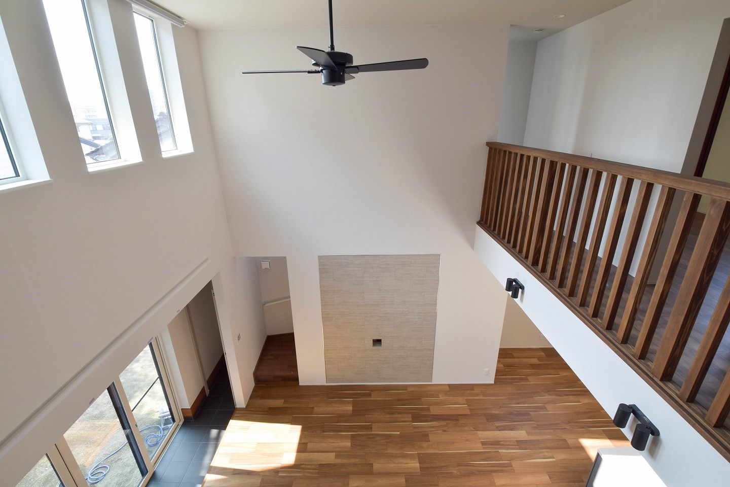 ▼広々LDK 吹き抜け×縦長窓の組み合わせで、照明いらずの明るさに。お昼寝したくなるような、ぽかぽかとあたたかい素敵な空間に仕上がっています!