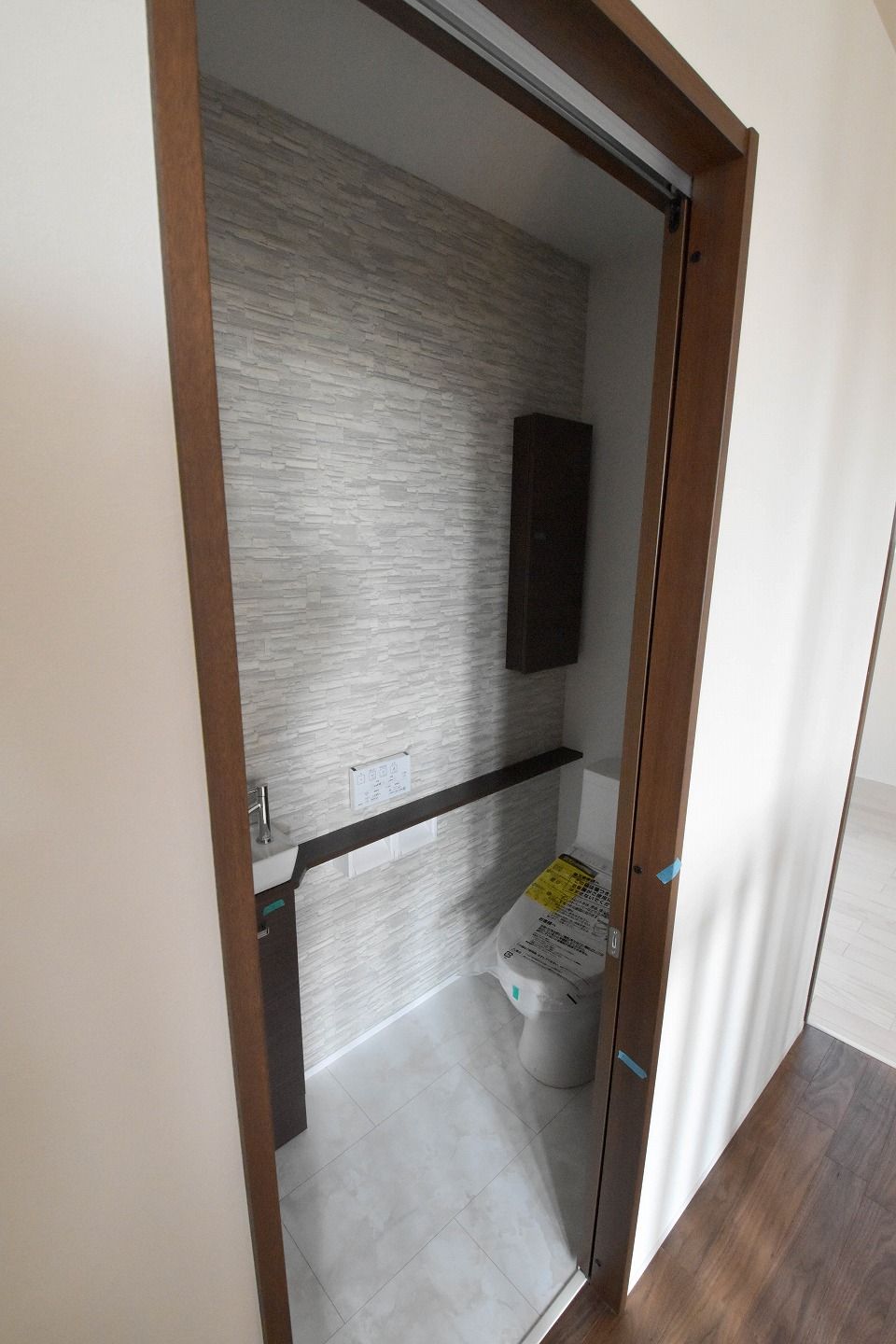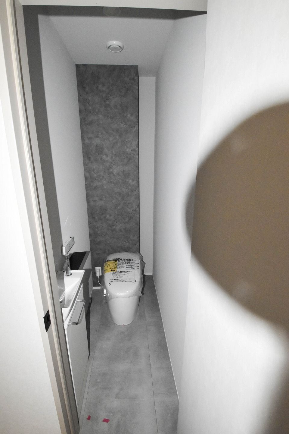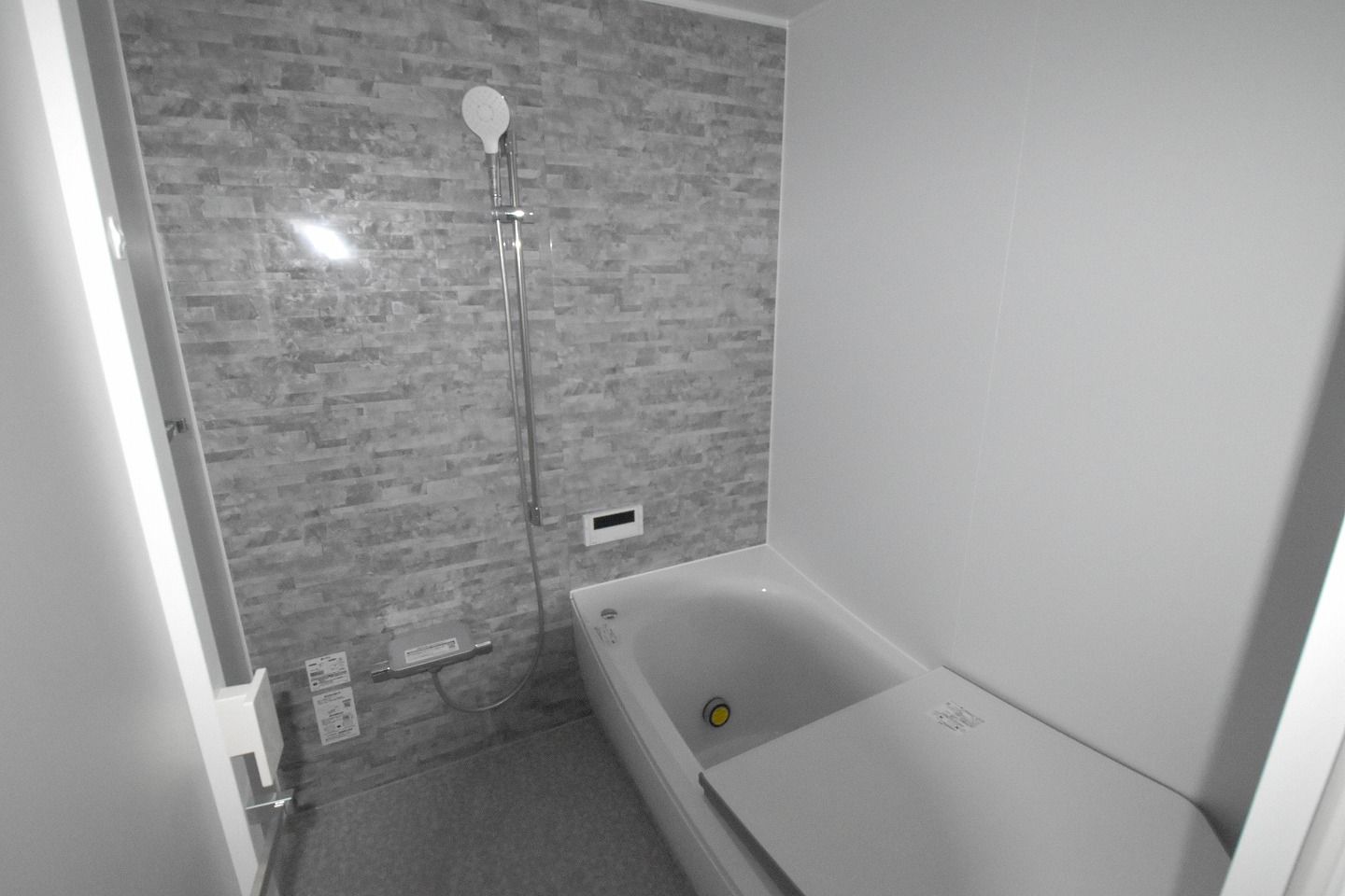 ▼洗面所・浴槽・トイレ 白とグレーでコーディネート。無駄を削ぎ落としたコントラストが、一日の疲れをリセットする場所にふさわしい、静かで上質な空気感を生み出しています。