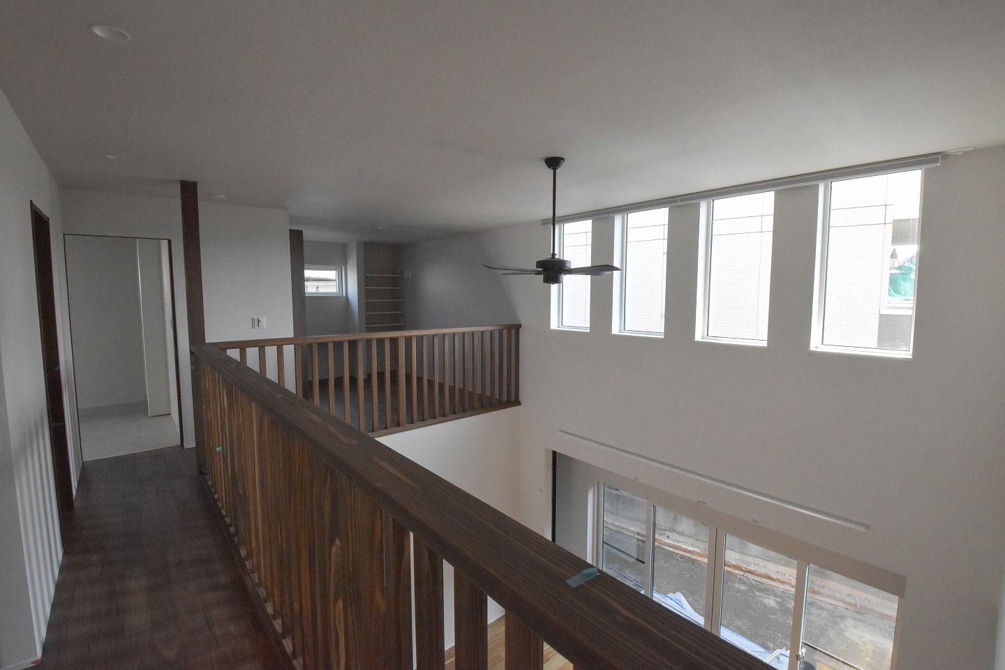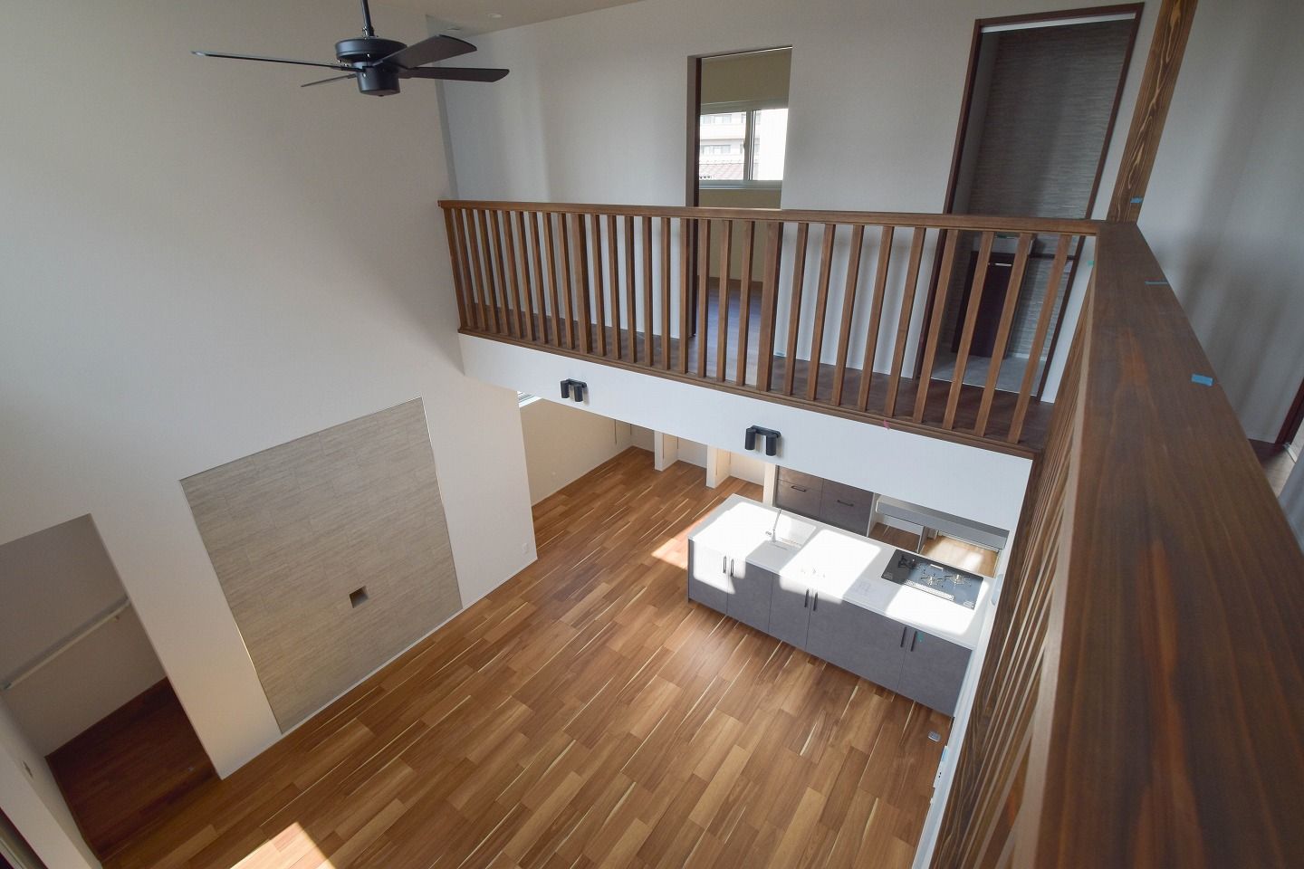 ▼2階の奥に、家族の気配を感じるフリースペースを。吹き抜け越しに1階のリビングやキッチンまで視線が届き、
