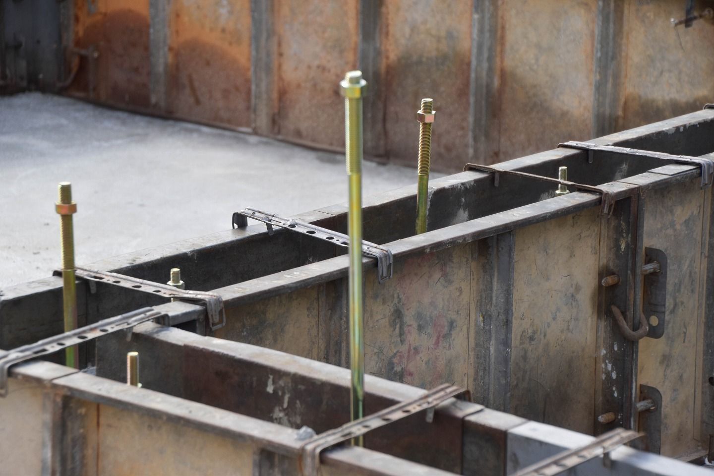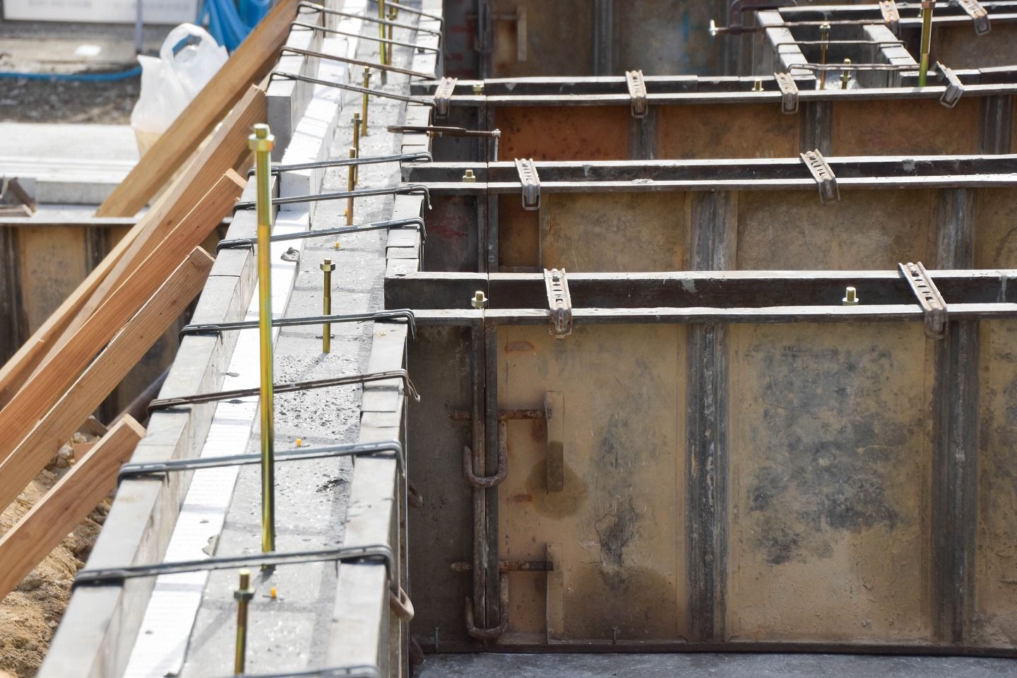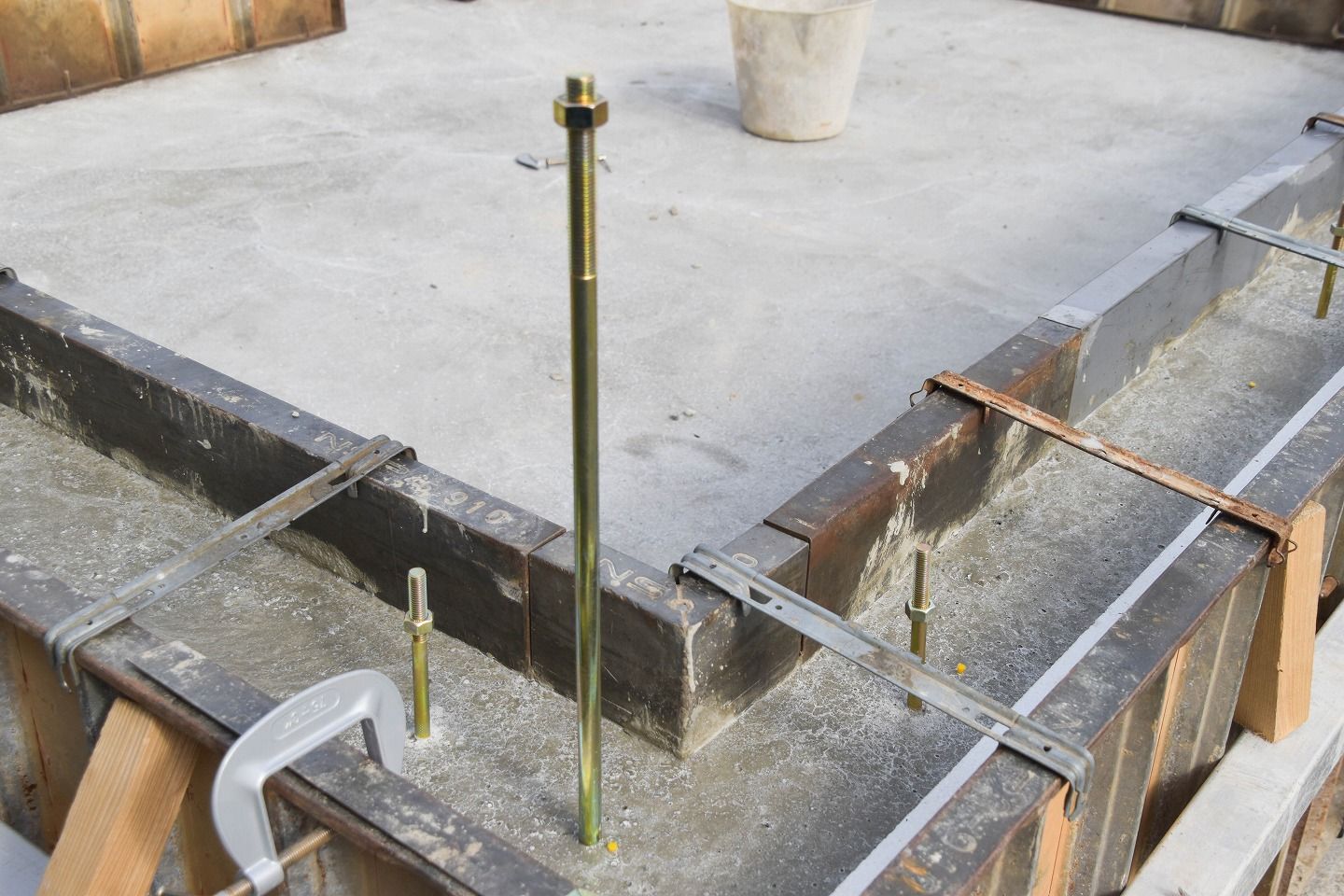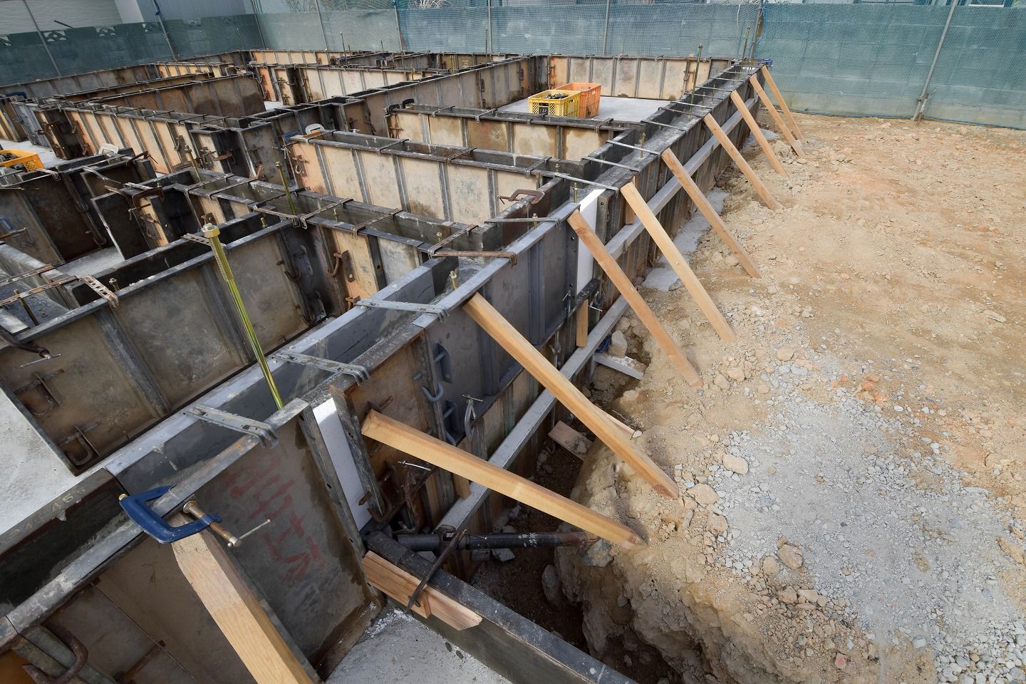 ▼コンクリートを流す際に型枠がズレないようにしっかりと固定されています。