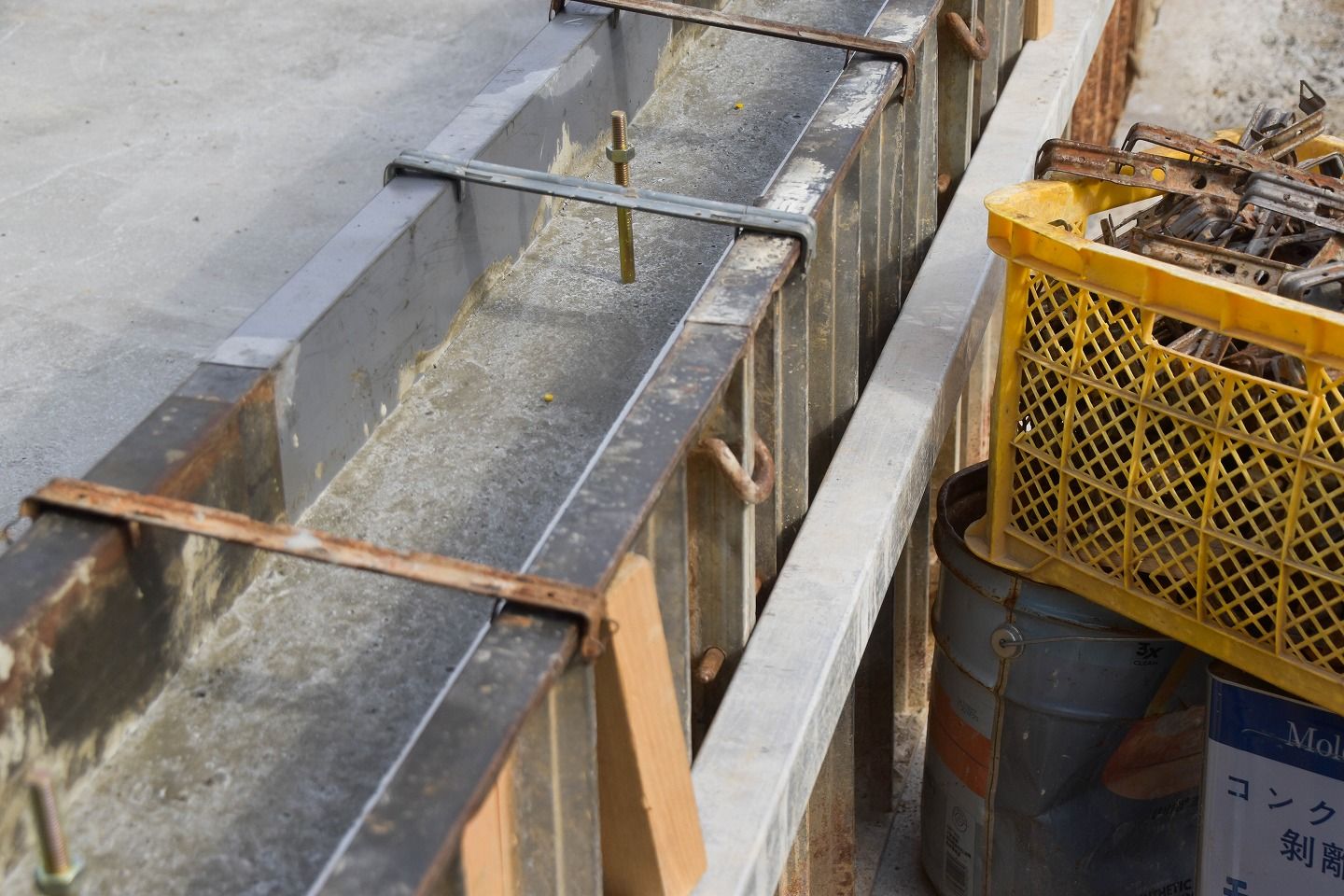 本日は、型枠取り付け後、コンクリートが流し込まれていました。