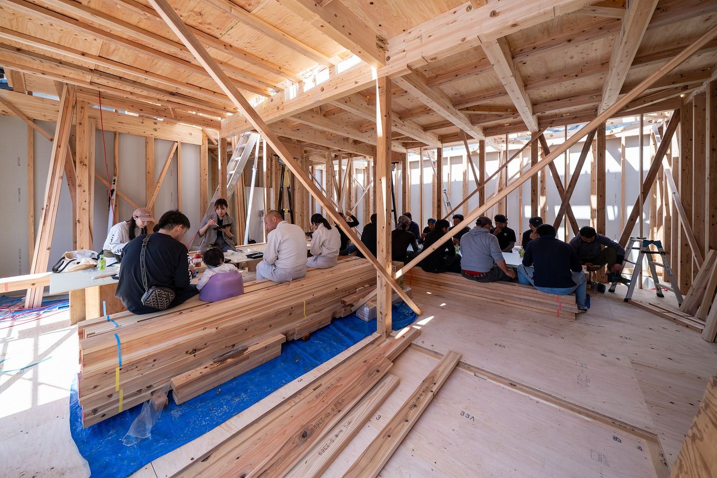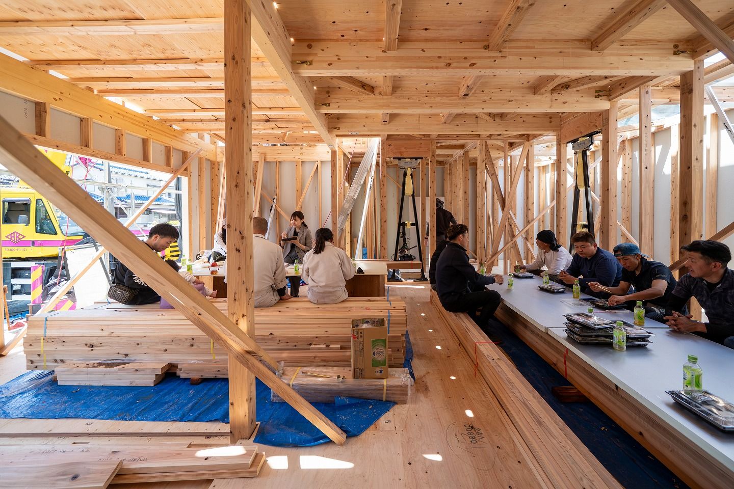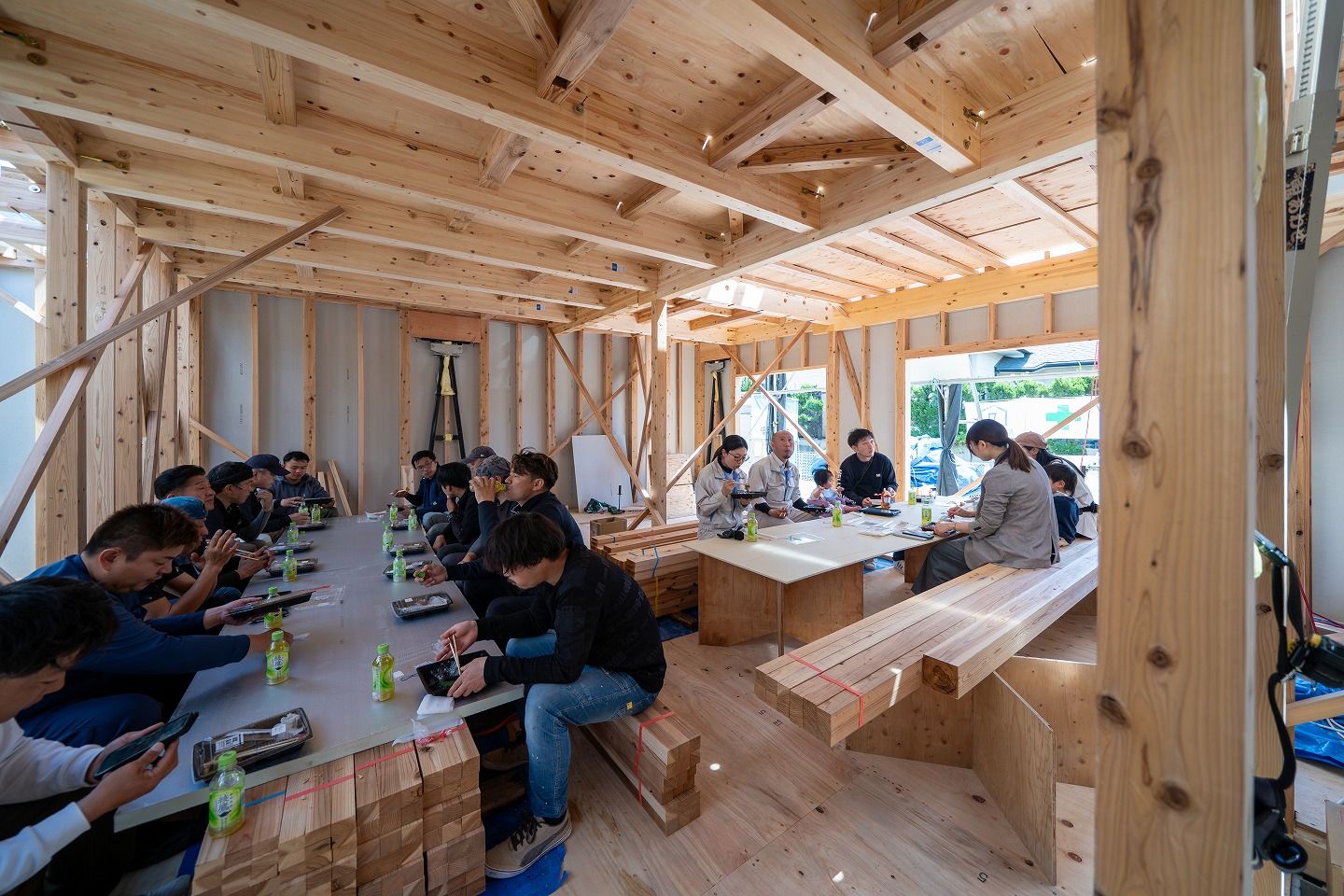 ▼お昼の様子です。朝から始めて、もう2階部分まで建っていました!