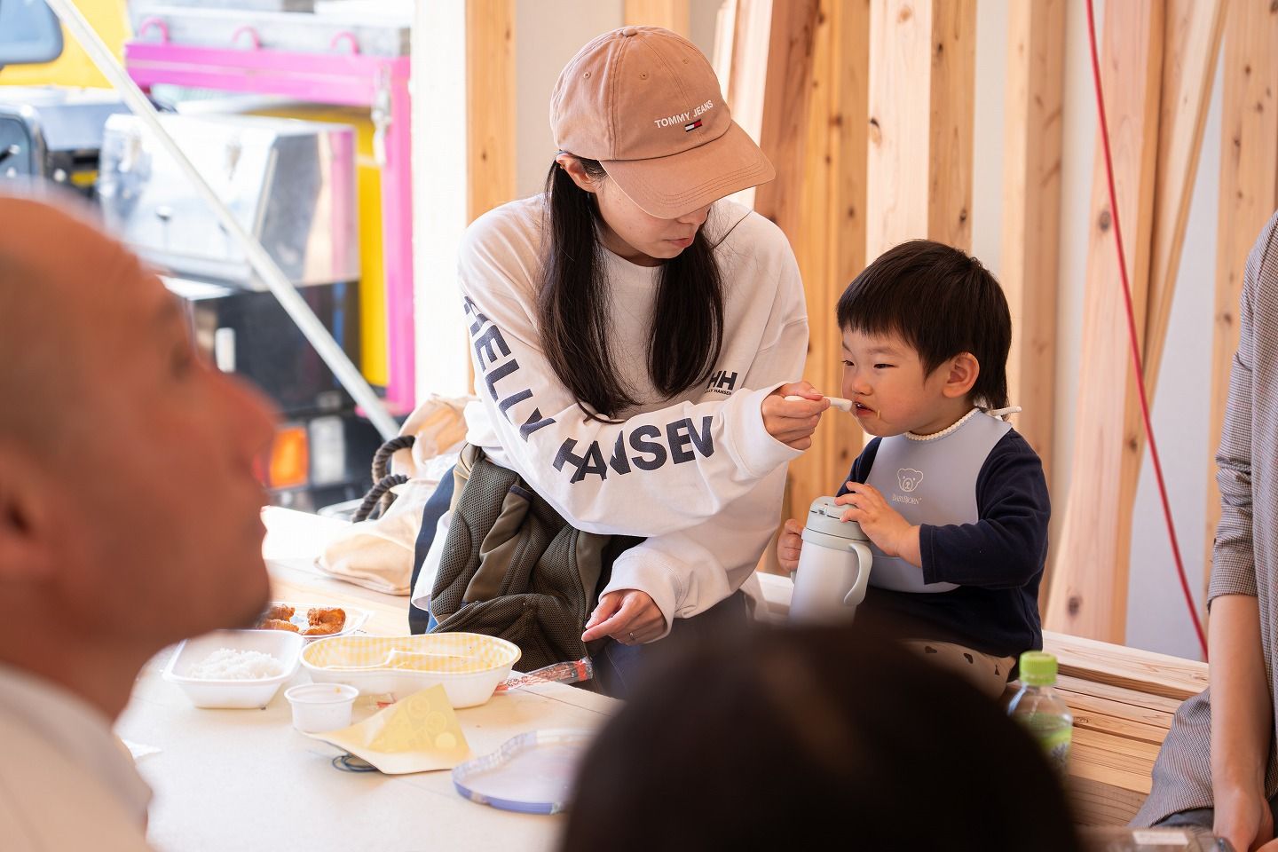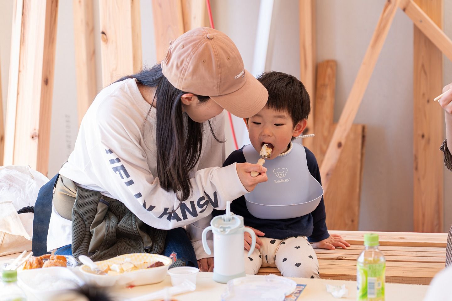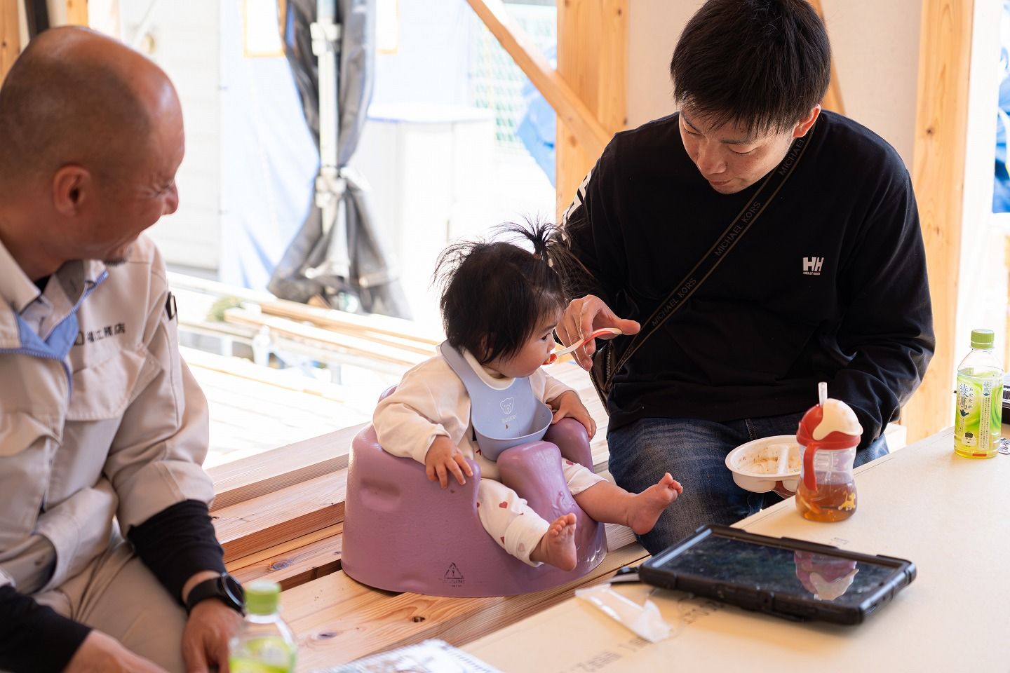 ▼お昼の様子です。朝から始めて、もう2階部分まで建っていました!