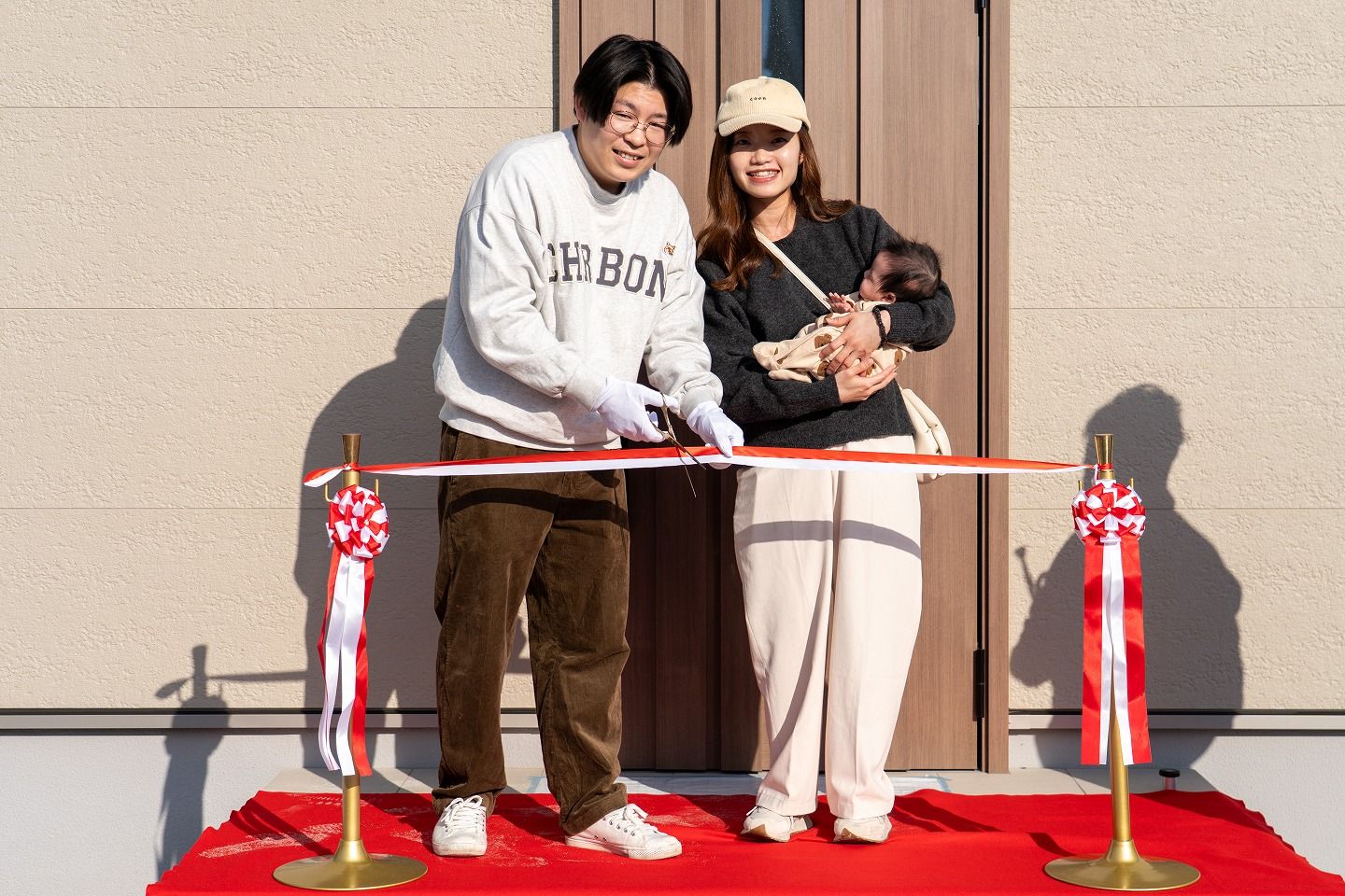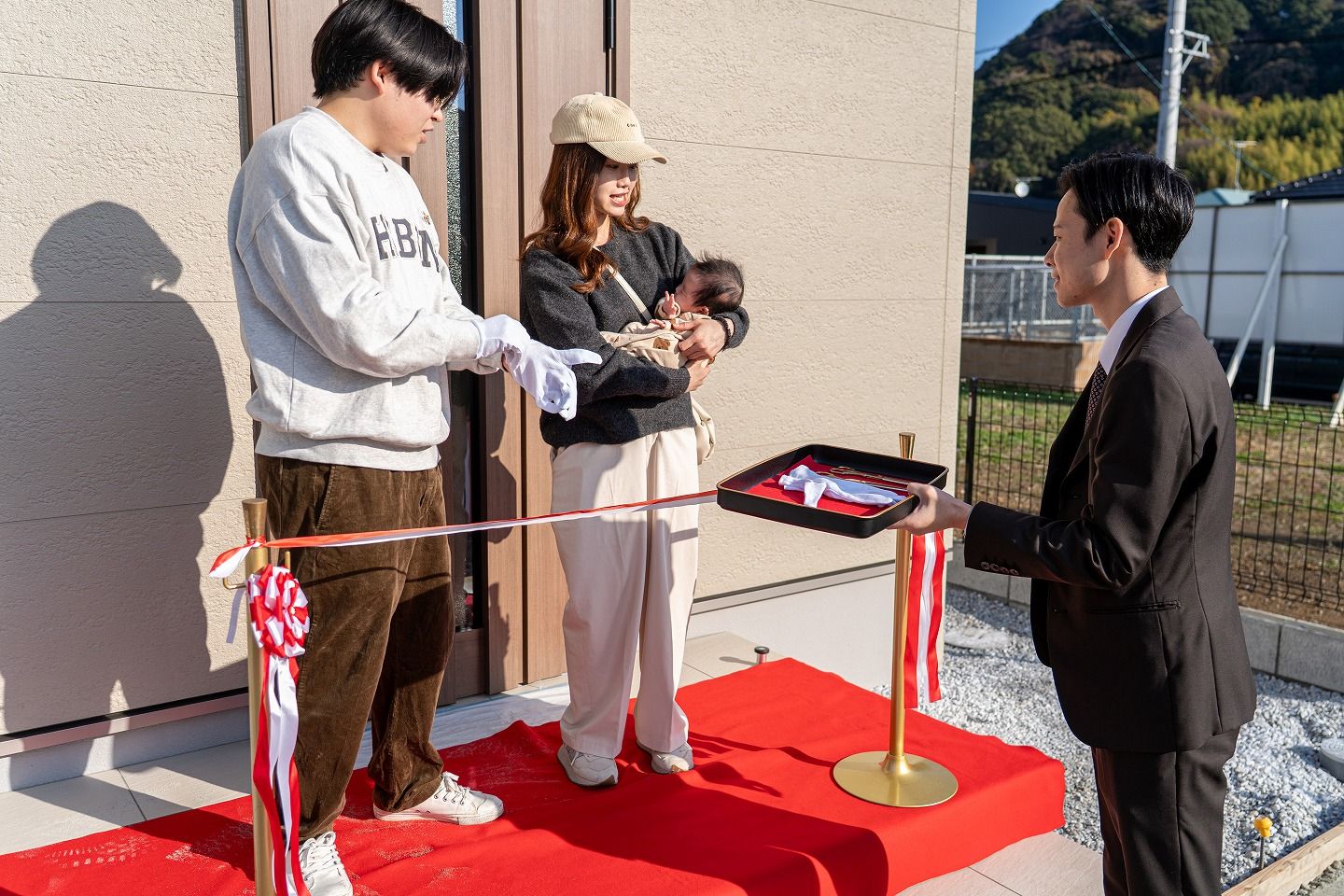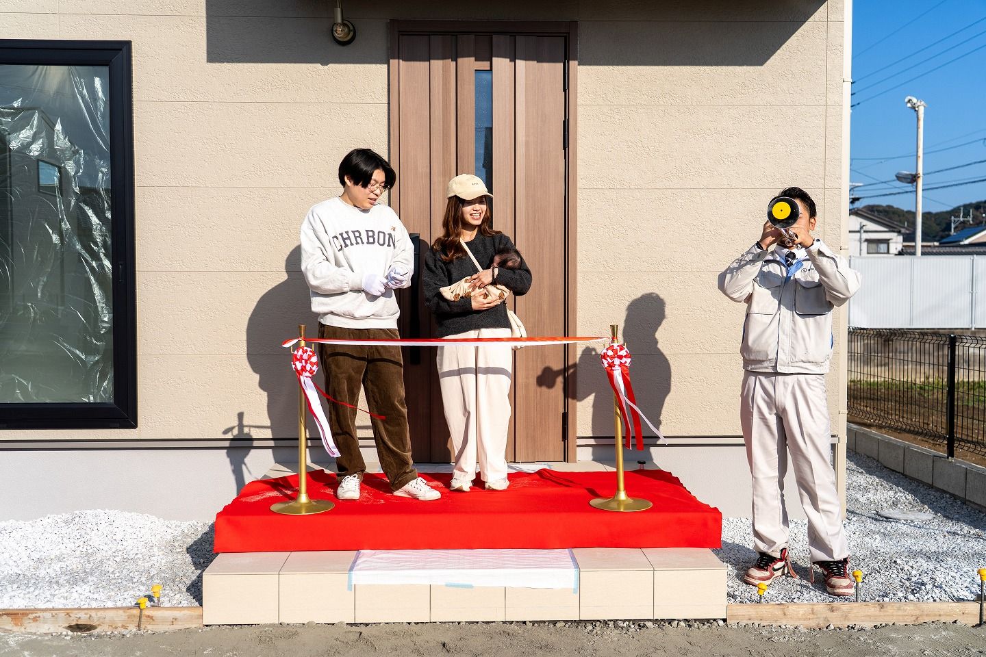 ▼お施主様がご到着されました!早速テープカットの準備です!