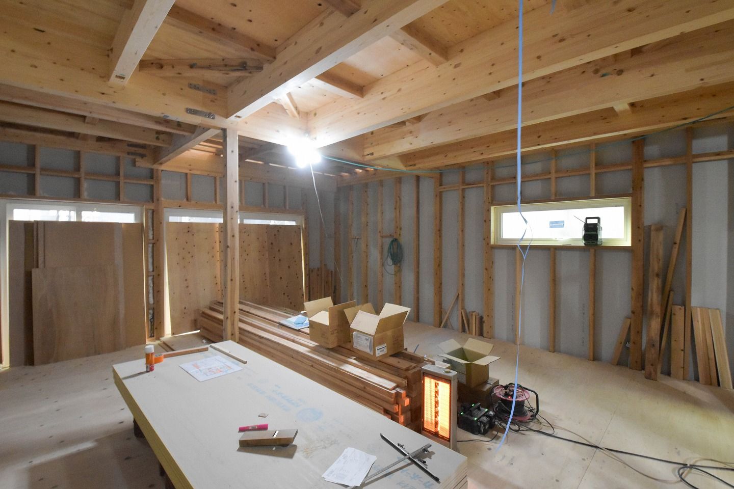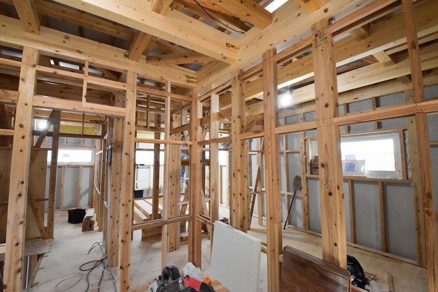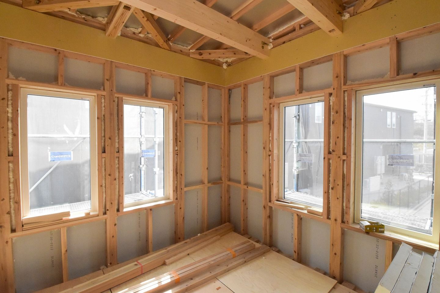 ■1階の様子です。各部屋の窓もすべて設置が終わっています。