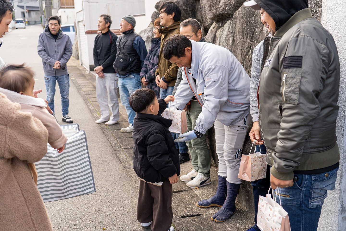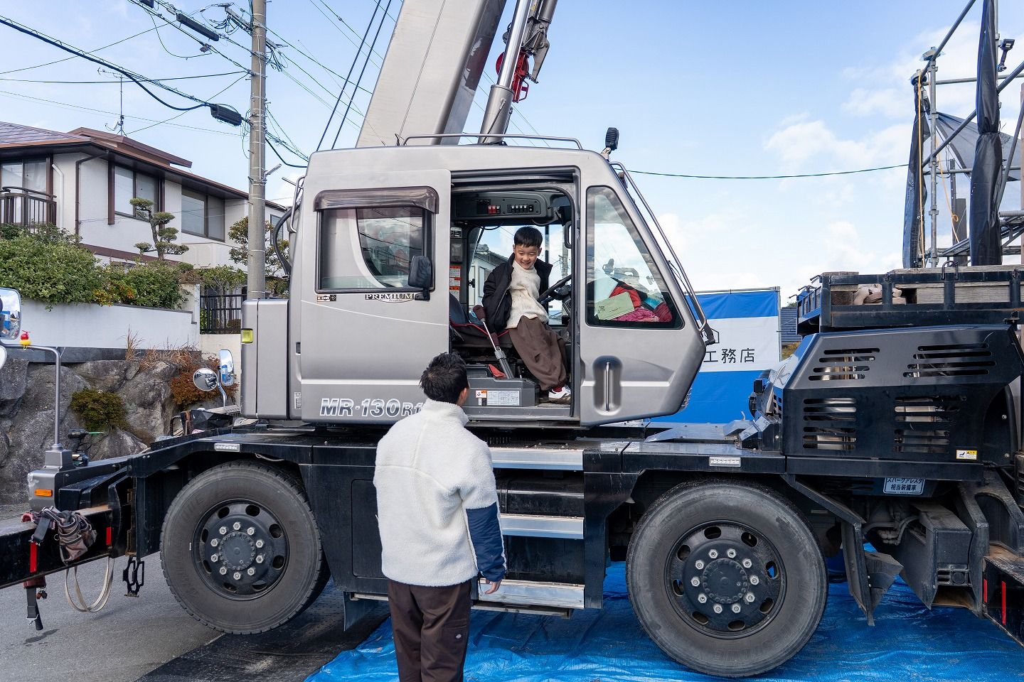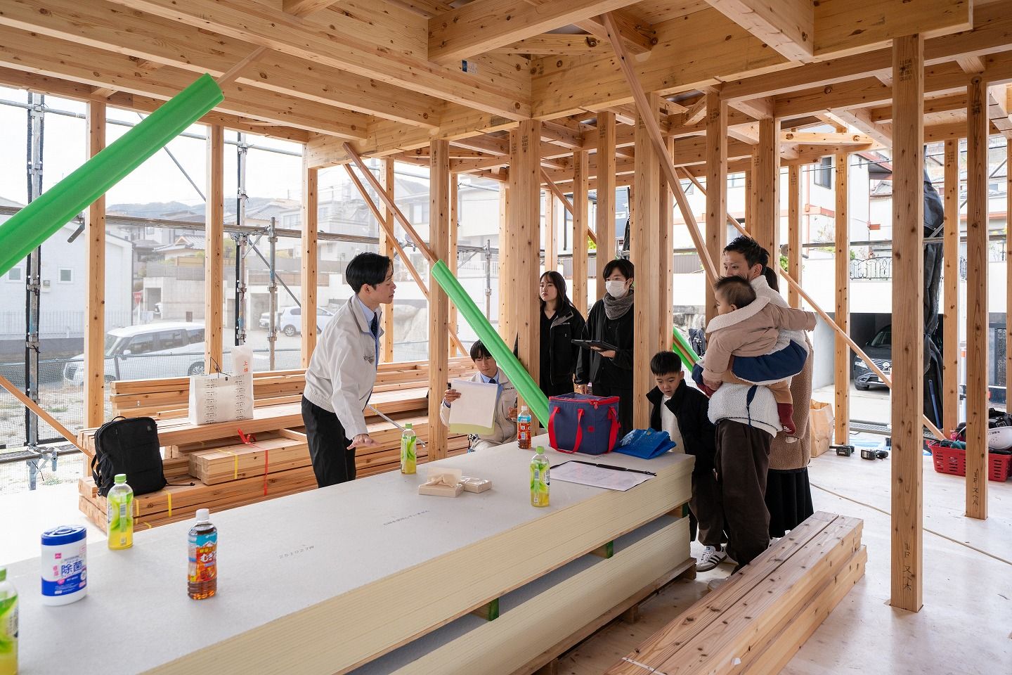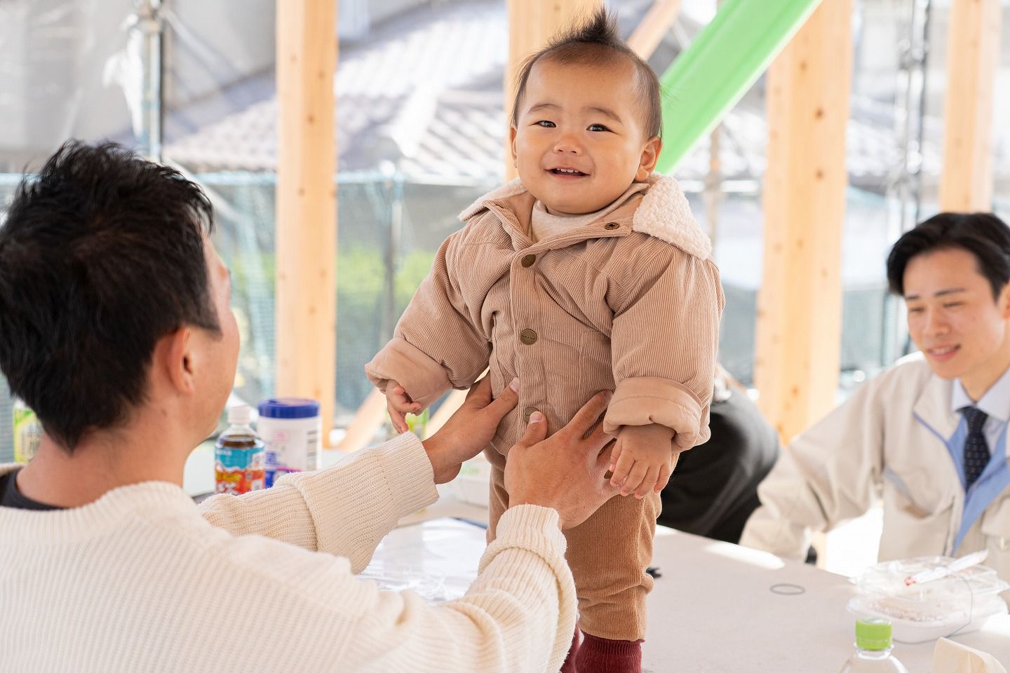 トップページ > 建築現場 > 西区10 > 「福岡市西区10」注文住宅現場リポート④【上棟式】 「福岡市西区10」注文住宅現場リポート④【上棟式】 2025.12.22掲載 こんにちは!リポート担当の有村です。12月22日(月)晴れ。本日は福岡市西区にて上棟式を執り行いました!それではさっそくリポートしていきましょう!▼お昼の様子です。施工が着々と進んでいます!▼中では昼食会が行われていました!▼図面を見ながら現場案内をさせていただきました!実際に現場を見て回ることでイメージがしやすくなりますね!▼案内後には、柱に身長を刻みました!これからお家と一緒に成長していくのが楽しみですね!▼お子様がクレーン車が好きとのことで乗せてもらいました!なかなか乗れないですよ~!▼最後に大工さんたちにお土産を頂きました!ありがとうございます!▼この度の上棟式、誠におめでとうございます!これから本格的に始まる家づくり、ぜひ楽しまれてください! もっと福岡工務店を知りたい方 関連記事を見る 2025.12.15 「福岡市西区10」注文住宅現場リポート③【基礎工事】【立ち上がりコン】 2025.11.10 「福岡市西区10」注文住宅現場リポート②【基礎工事】【根切り】 2025.10.31 「福岡市西区10」注文住宅現場リポート①【地鎮祭】