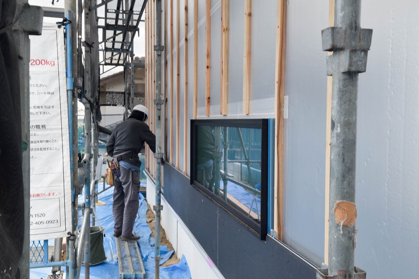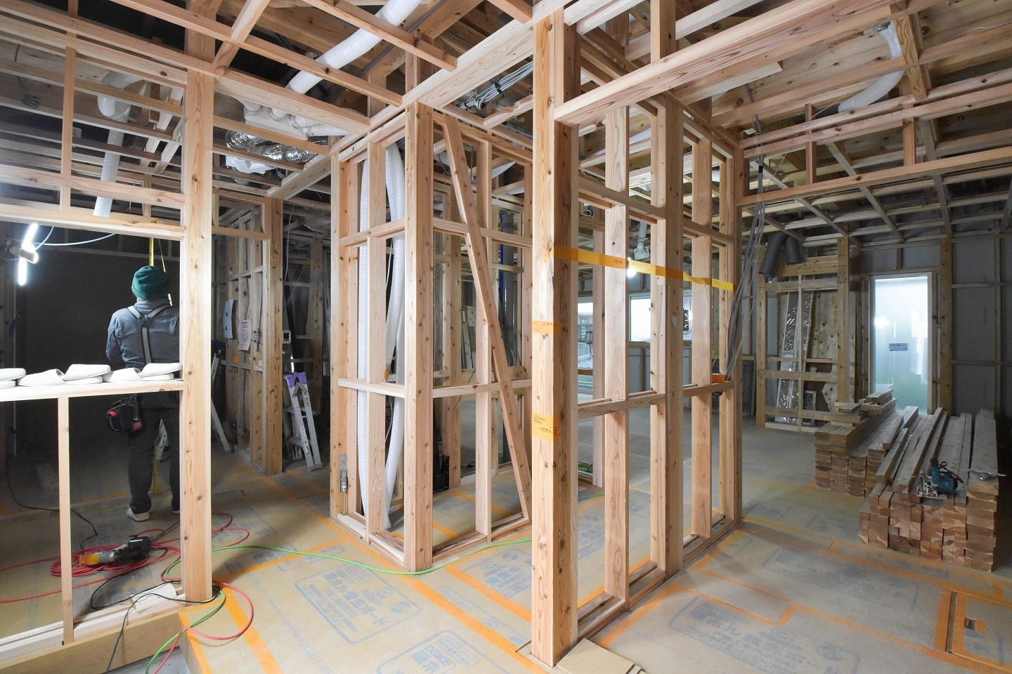 - こんにちは。リポート担当の松永です。本日は、木工事と外壁施工の様子を見ていきたいと思います。