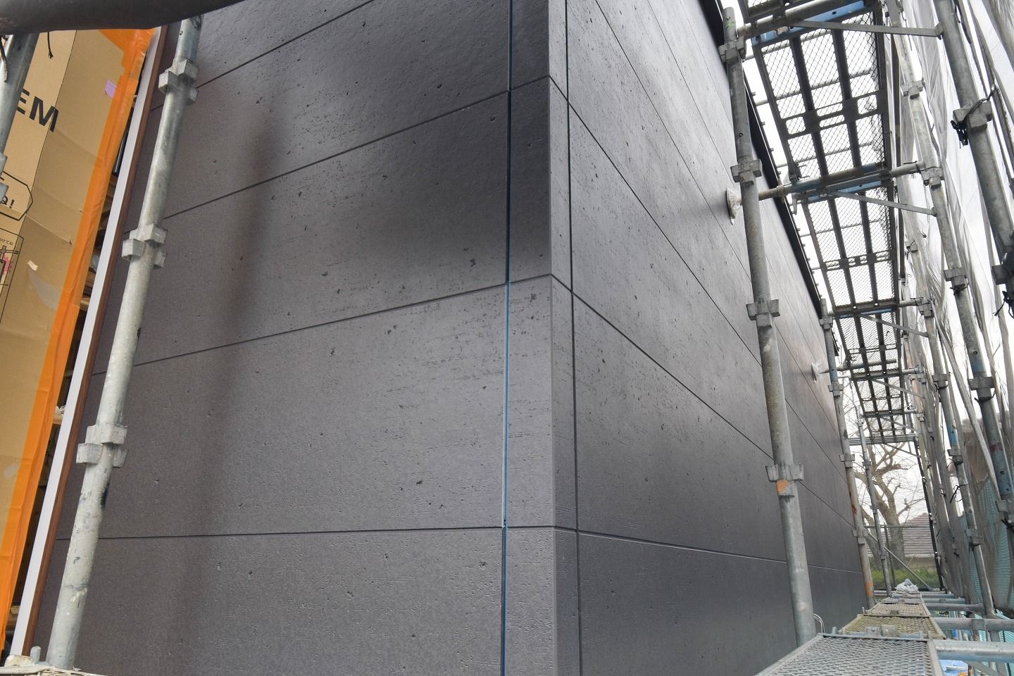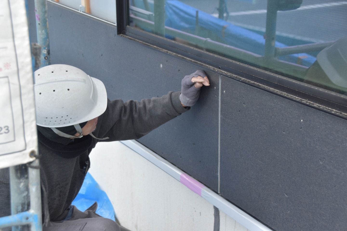 - ▼継ぎ目にはこれからコーキング材の施工が行われていきます。