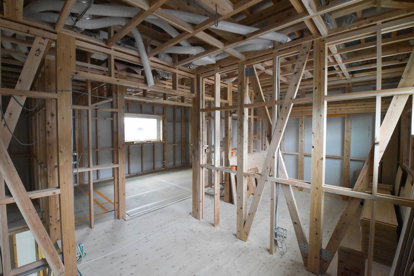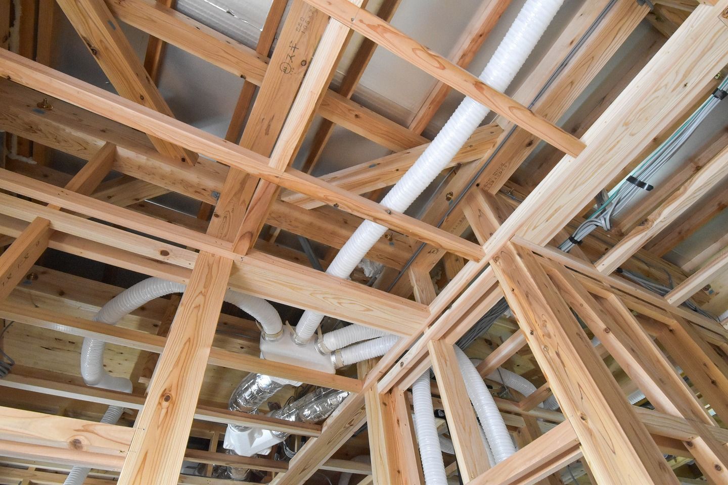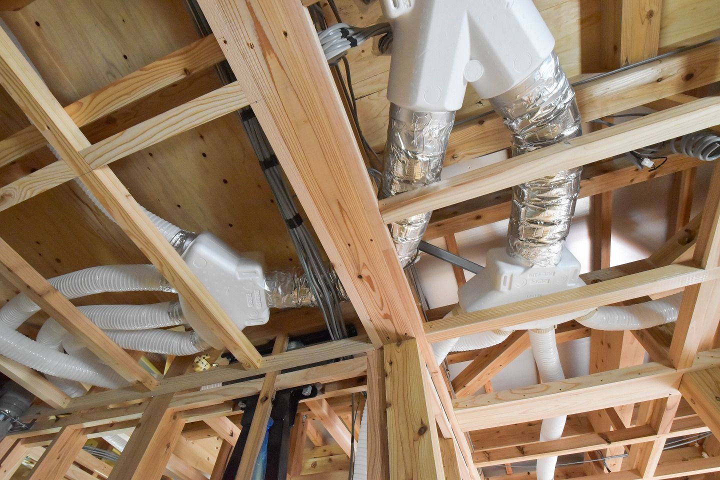 - ▼時間換気システムの施工やや配線も行われていました。