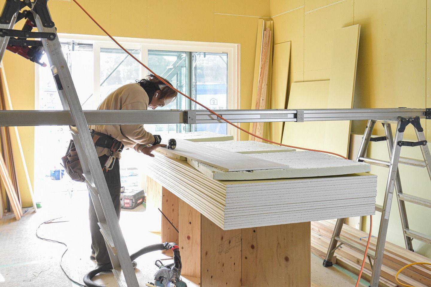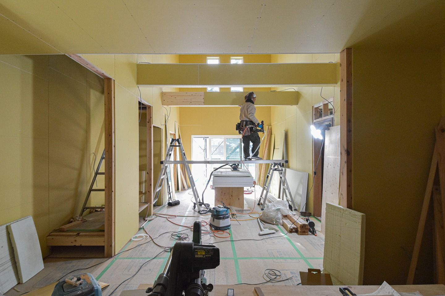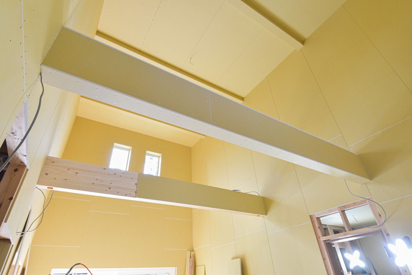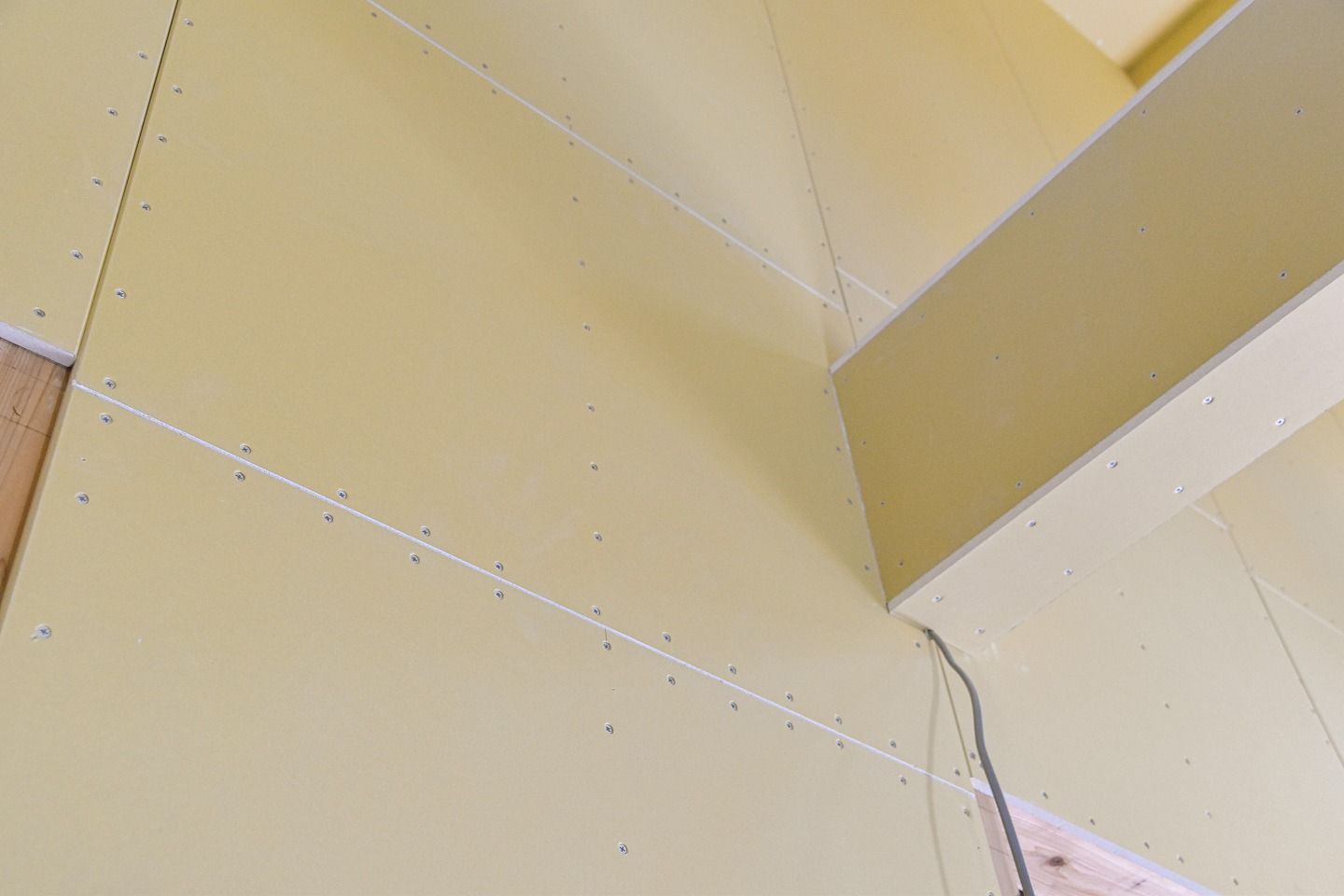 ▼なんと綺麗な間隔のビス!後に壁紙で覆われて見えなくなる部分も、大工さんたちによって丁寧に仕上げられています。