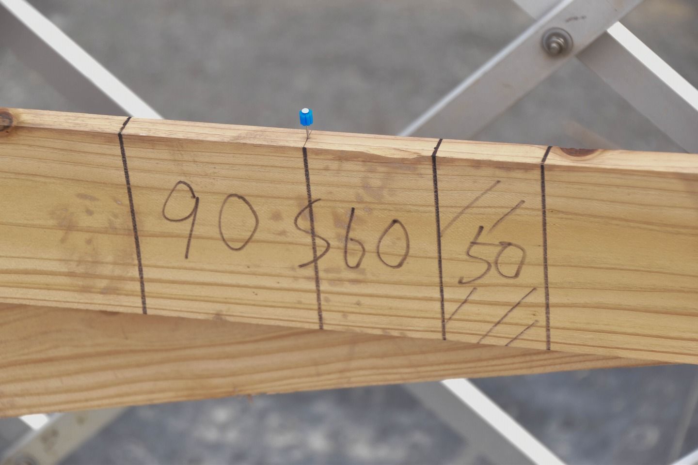 ▼遣り方には印の書き込みがあります。この「 斜線」は基礎断熱材の厚みを指し、「60/90」は150㎜の基礎コンクリートの厚みで、90㎜と60㎜の間が芯になるという目印です。 ▼その後に行われるのが「根切り」です。
