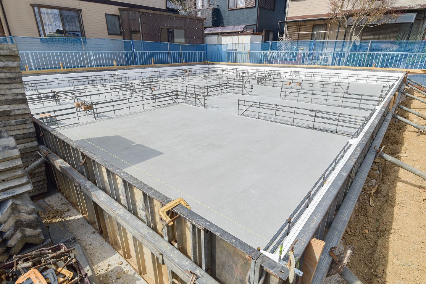 ▼一面、綺麗にコンクリートが打設され、配筋が顔を出しています。
