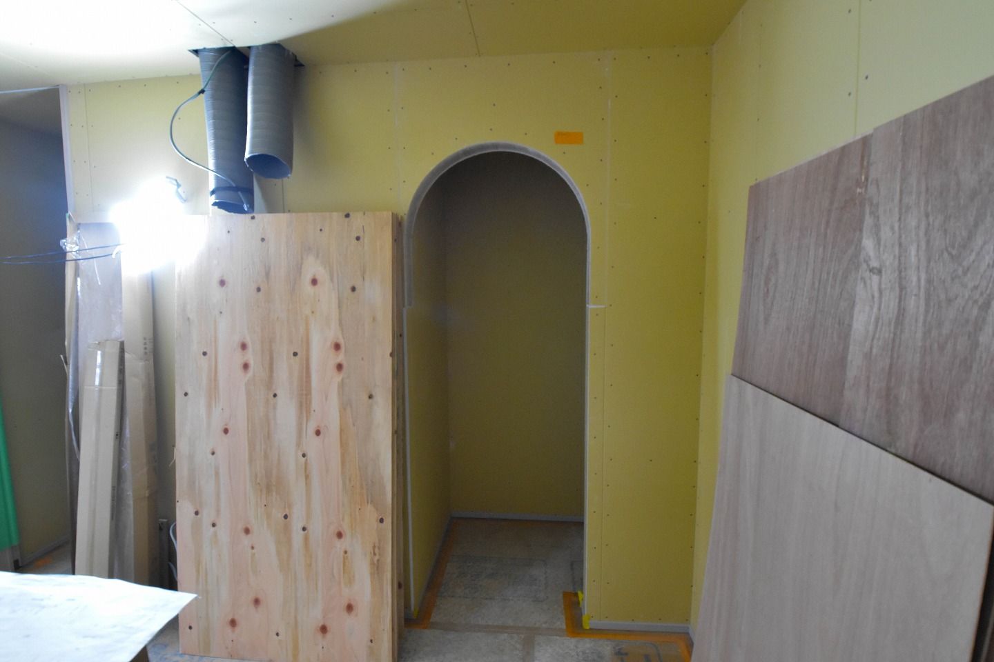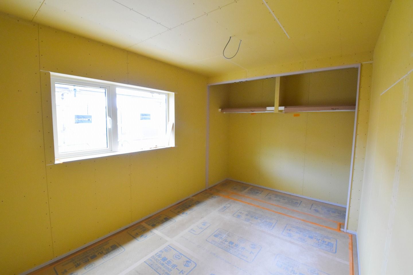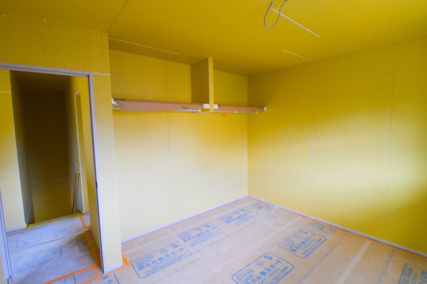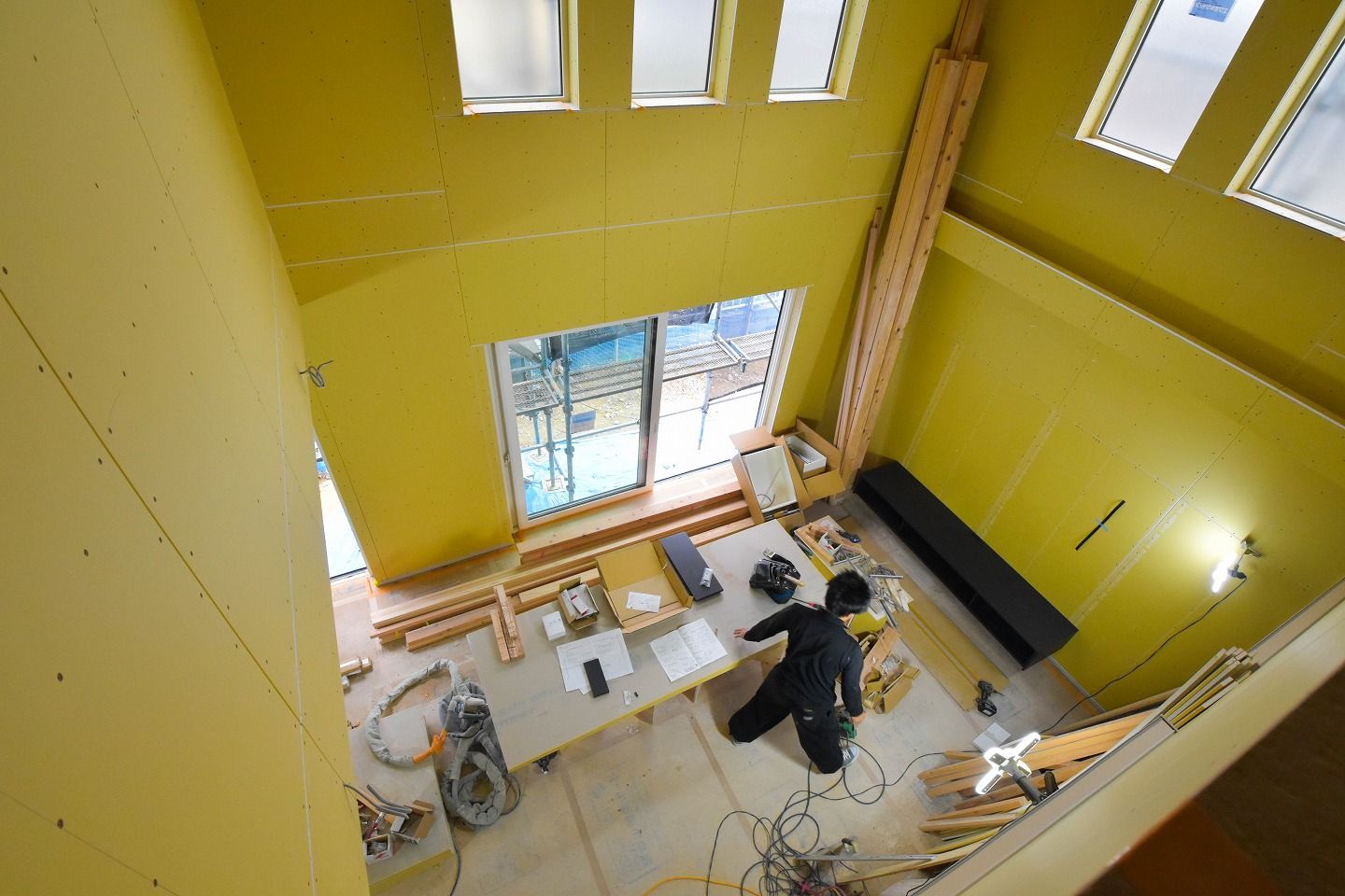 ▼リビングの様子です。こちらも石膏ボードで覆われ、着実にと工事が進んでいるのが分かります。