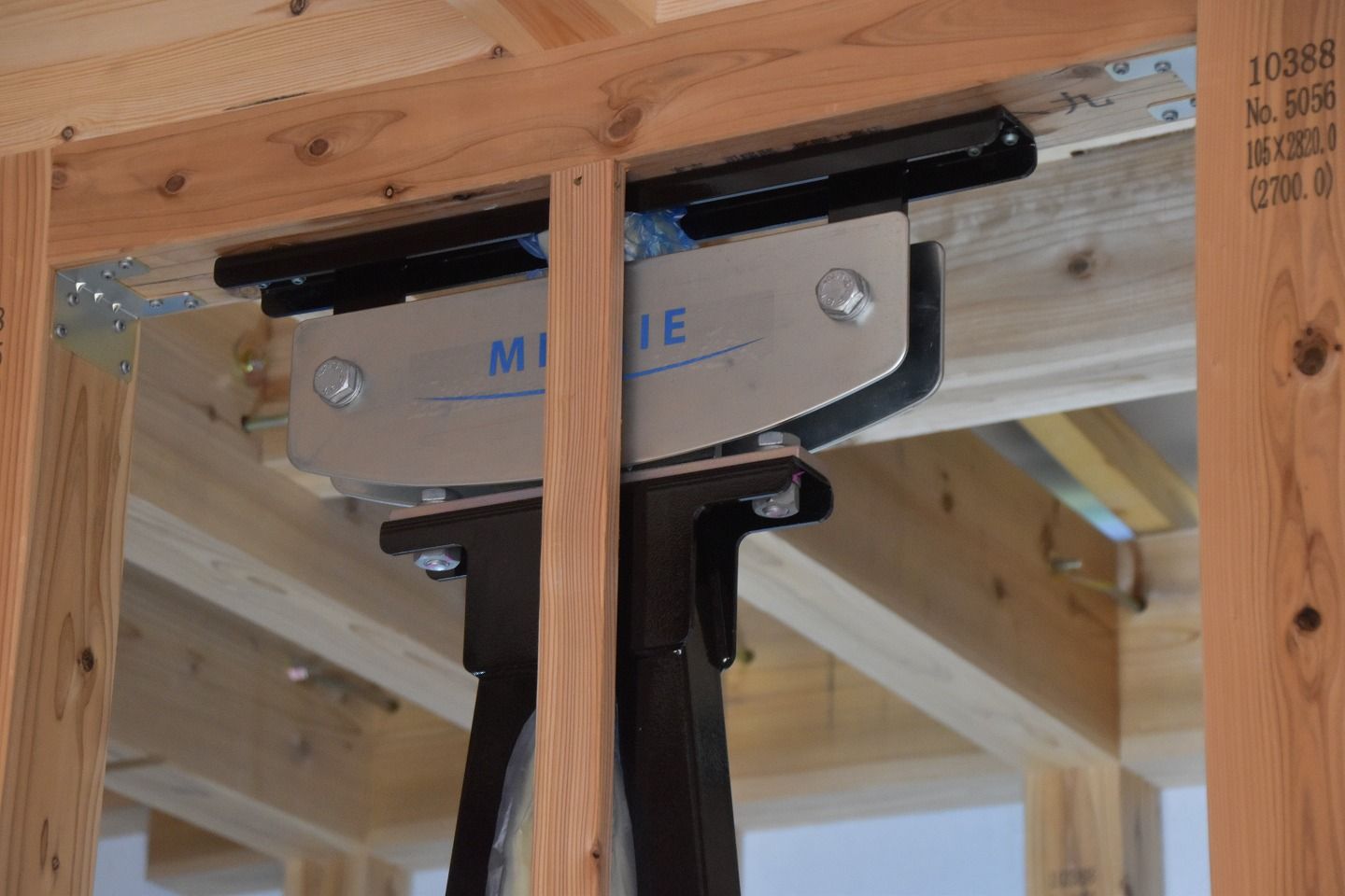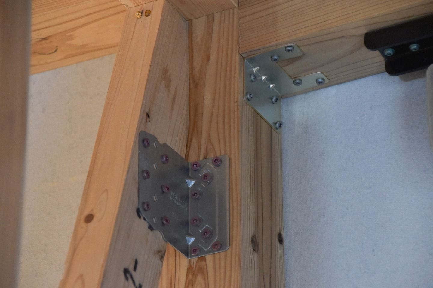 ▼本日は「金物取付」が行われていました。家の柱や梁など目に見えない基礎部分を補強し、家を支える重要な役割を果たしています。
