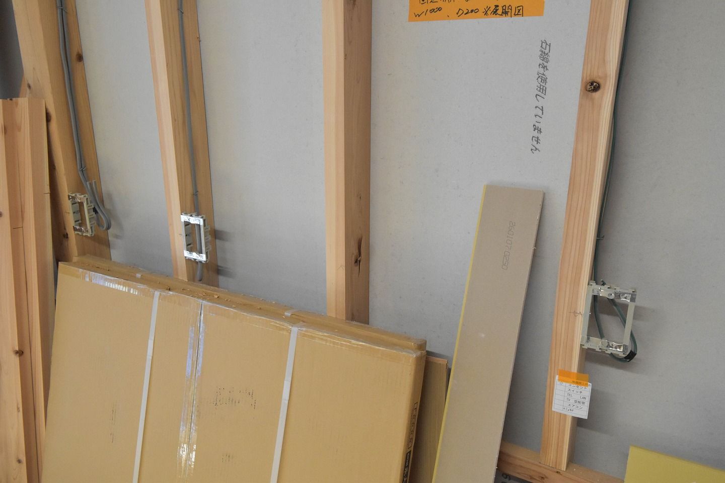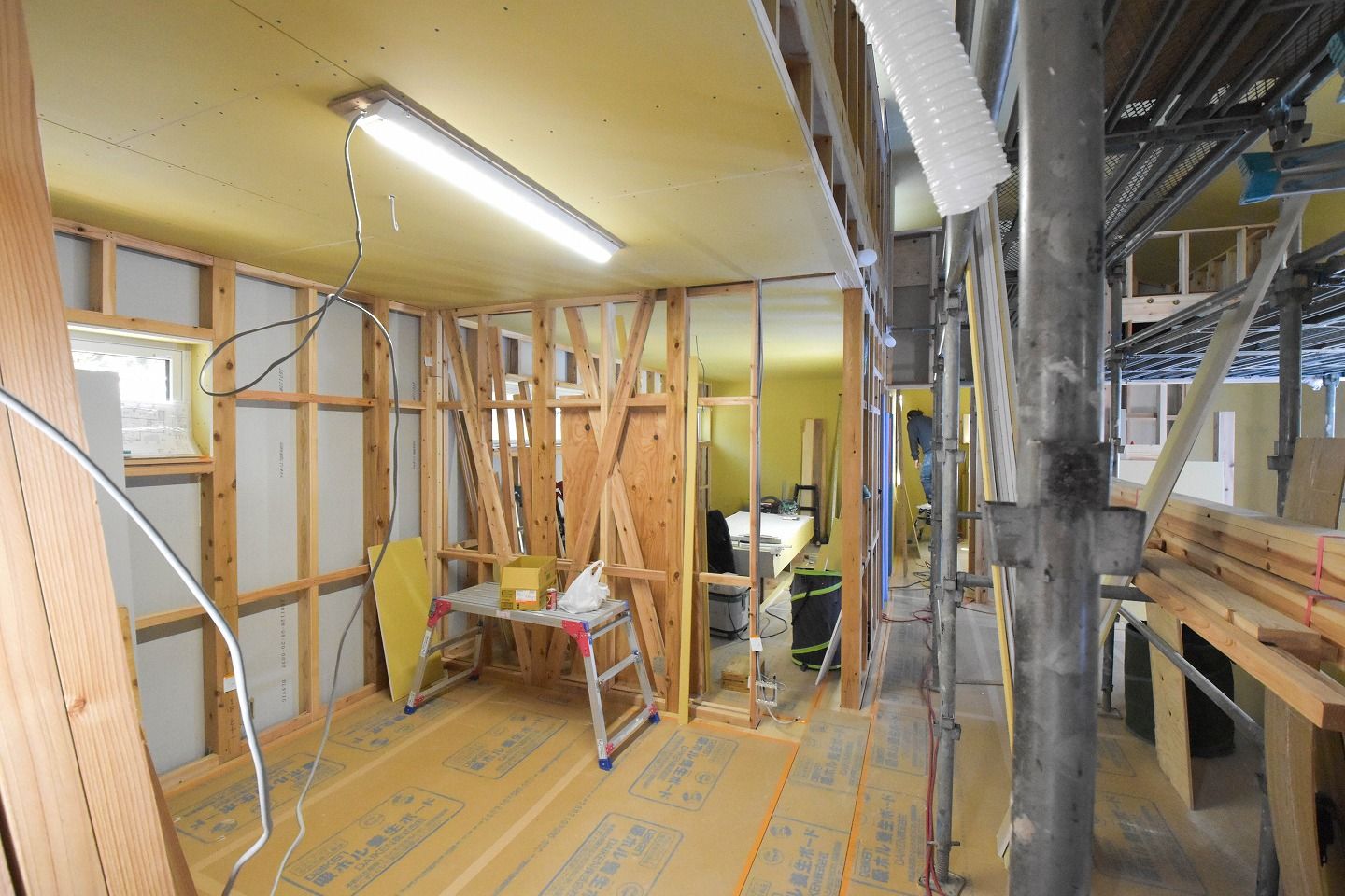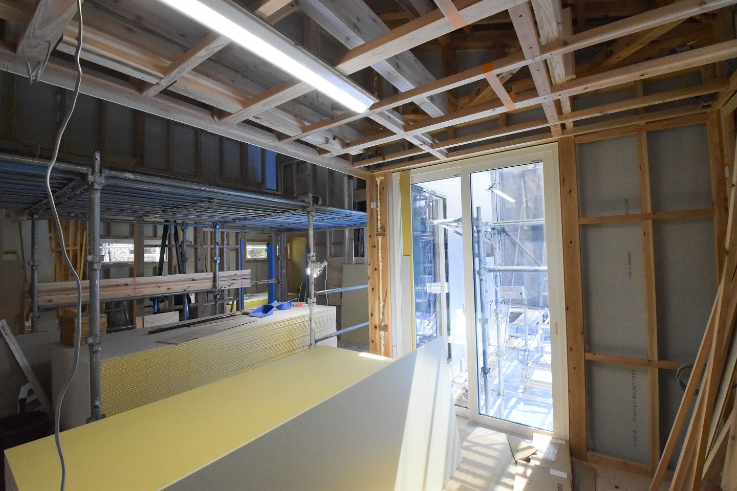 ▼こちらの部屋は、天井や壁は石膏ボードが施工されています。