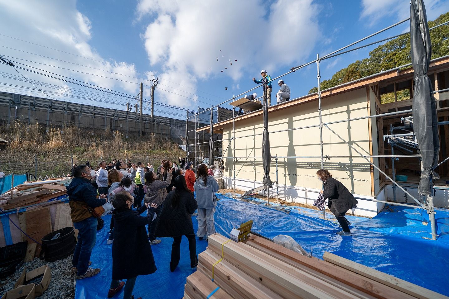上棟が無事完了し、大盛況だった餅まきの様子を見ていきたいと思います!
