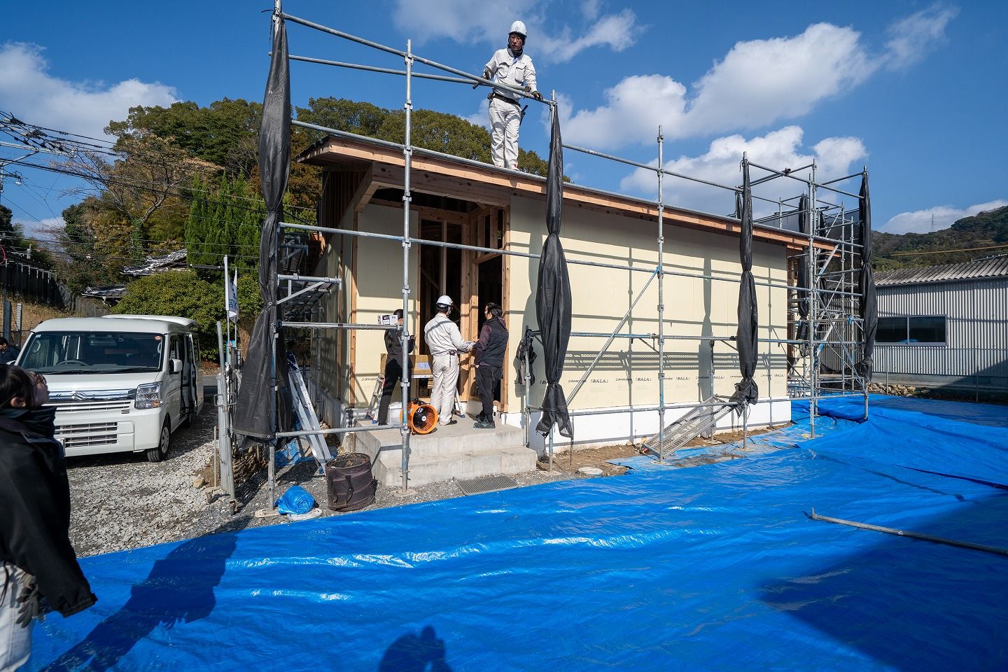 ▼夕方の様子です。無事上棟が完了していました!