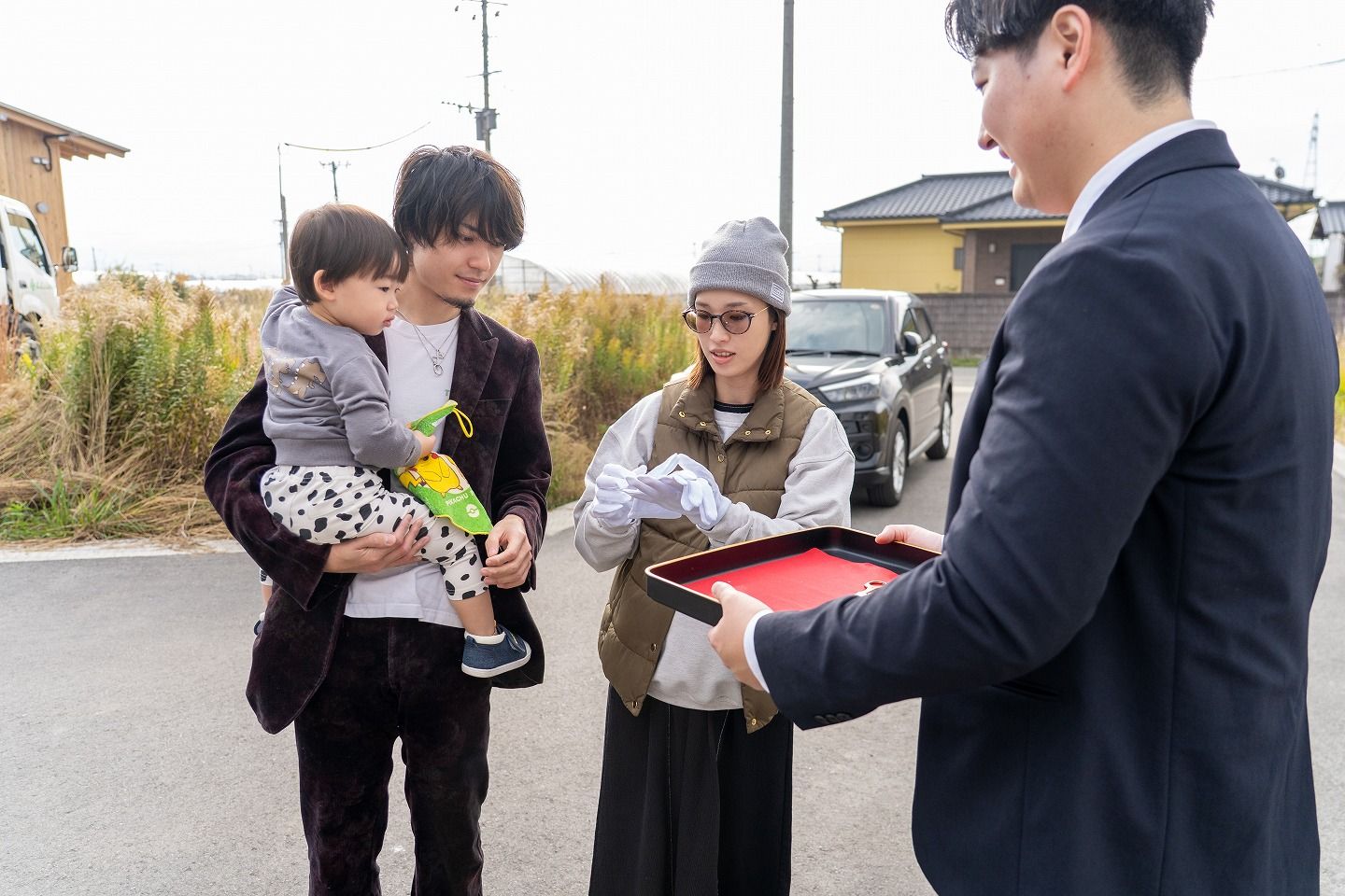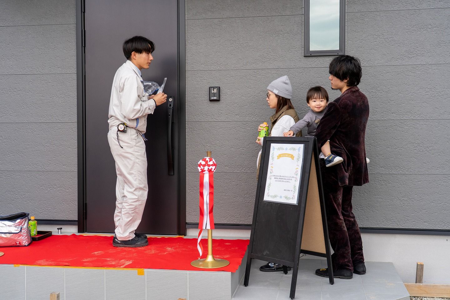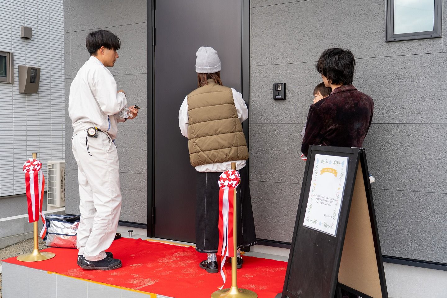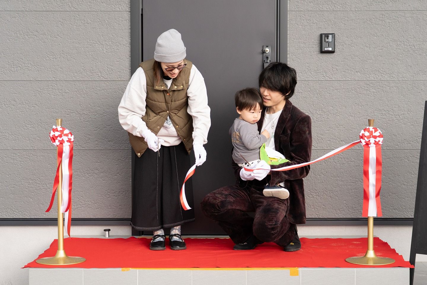 ▼お施主様がご到着されました!早速テープカットの準備です!