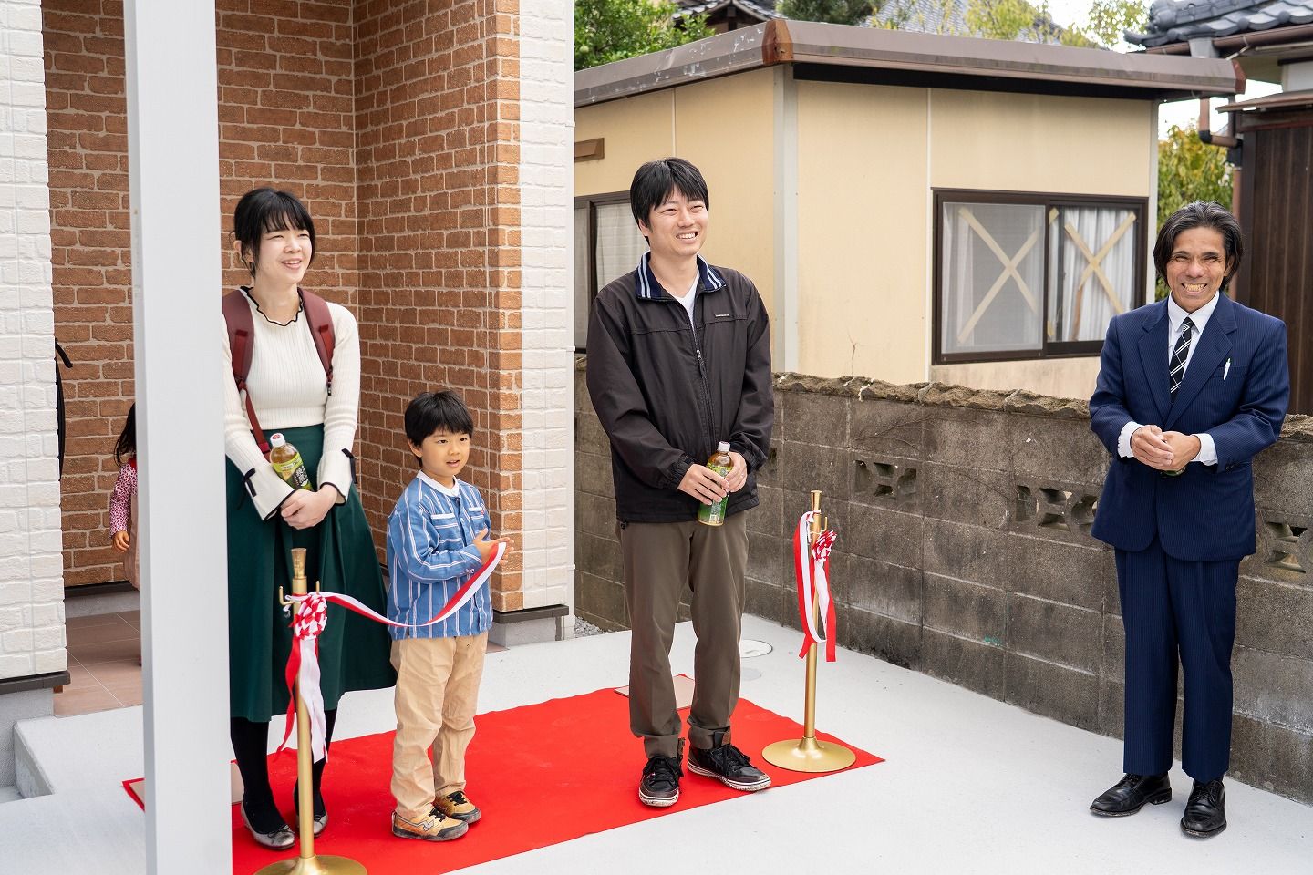 ▼お施主様がご到着されました!早速テープカットの準備です!